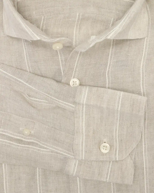CAMISA DE LINO BEIGE CON RAYAS BASTONCINO
