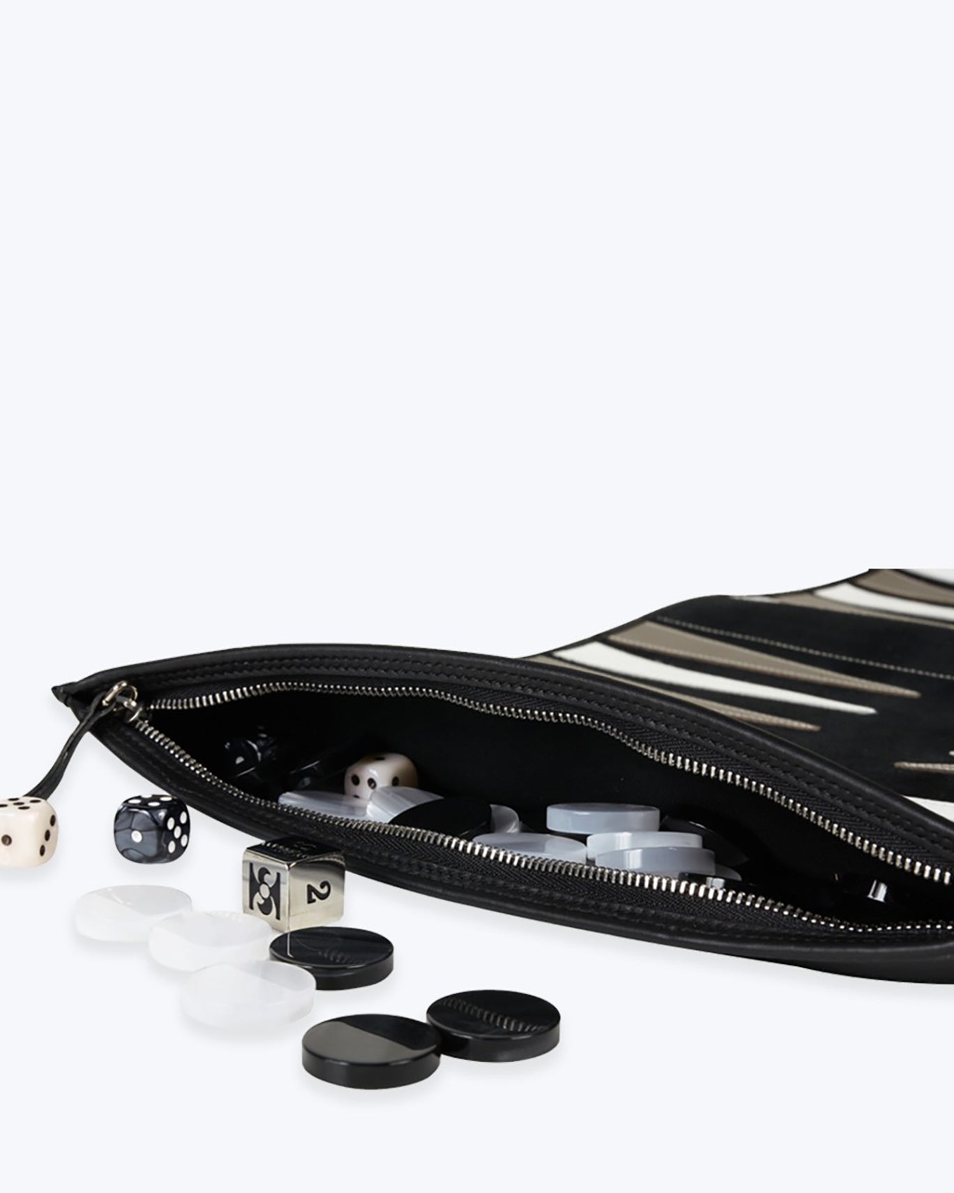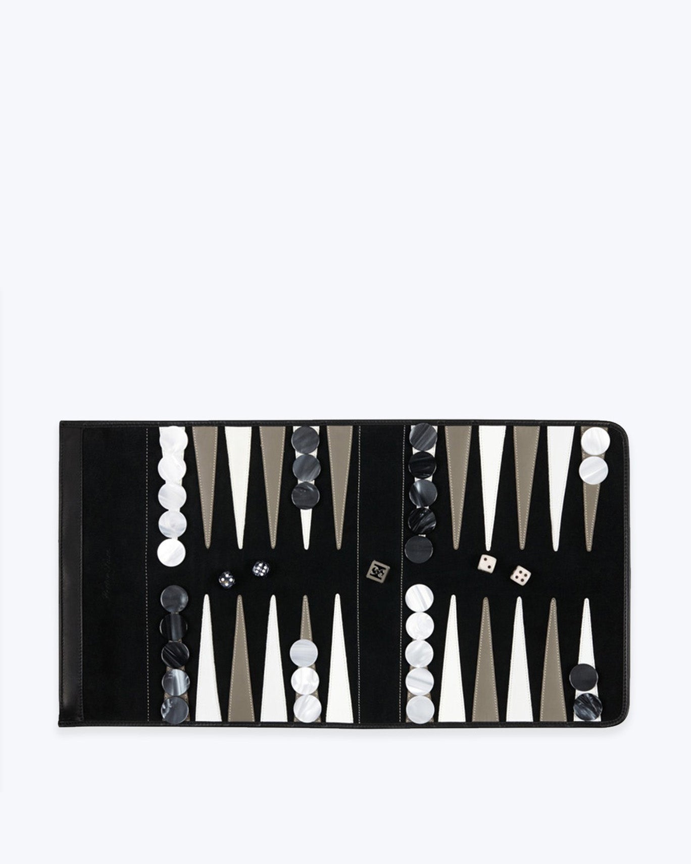 Hector Saxe velvet leather travel backgammon, handmade in France.