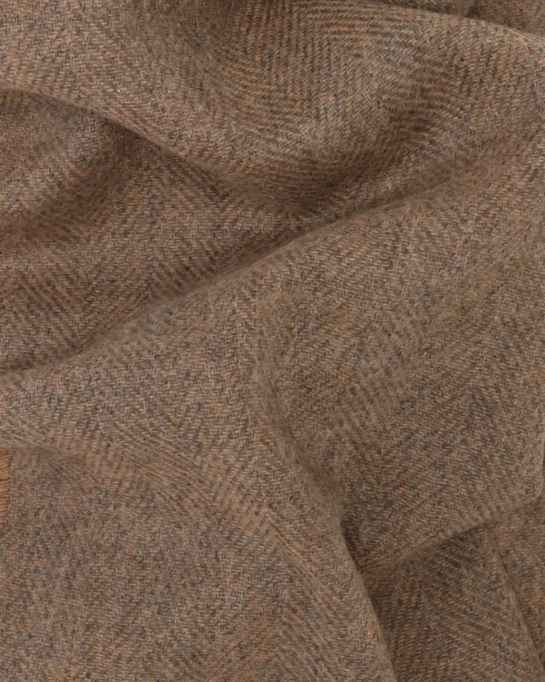 Bufanda de espiga marrón de la marca Fulham, acabada en flecos pequeños.