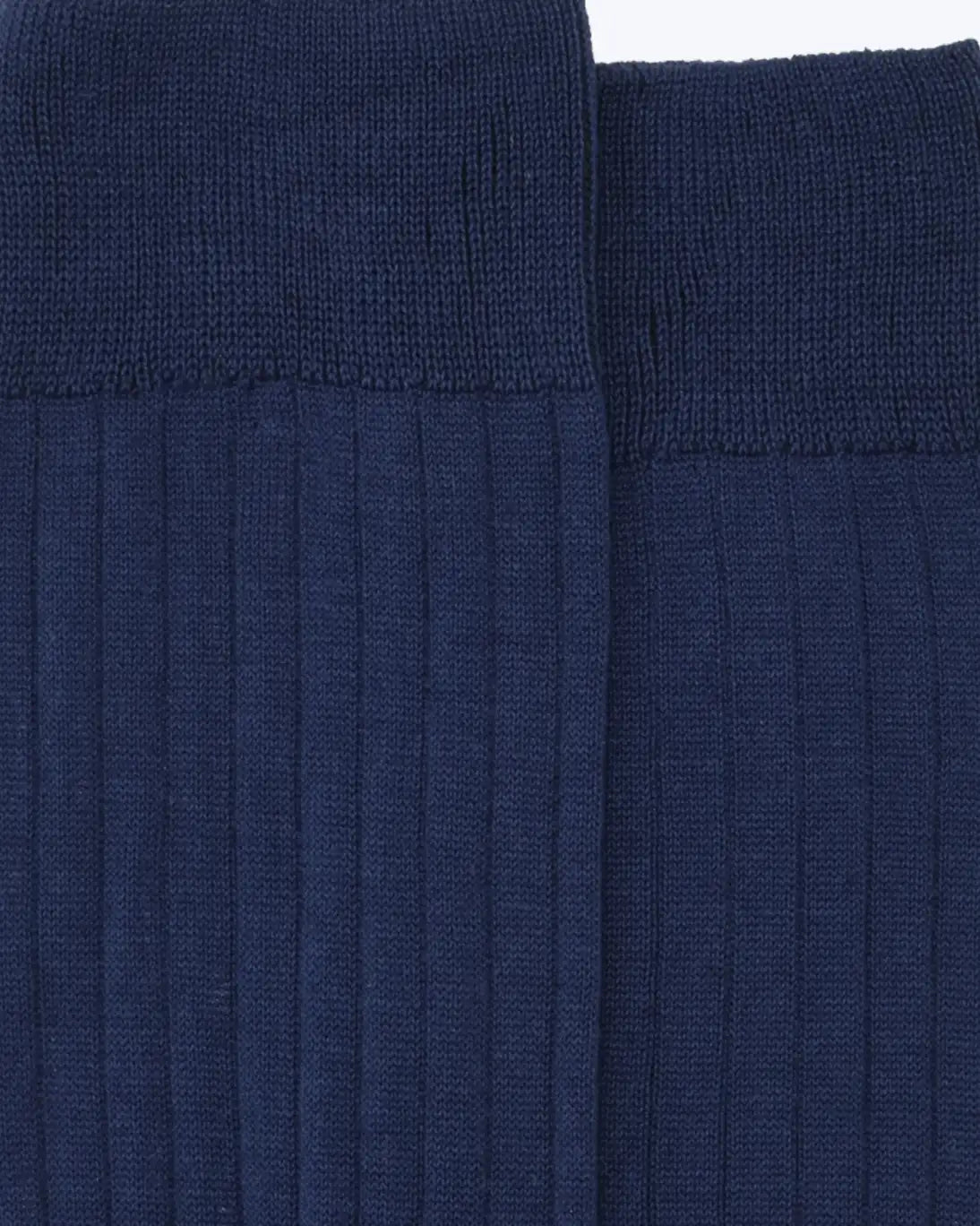 High-rise socks from the brand Alto Milano, in ribbed blue.