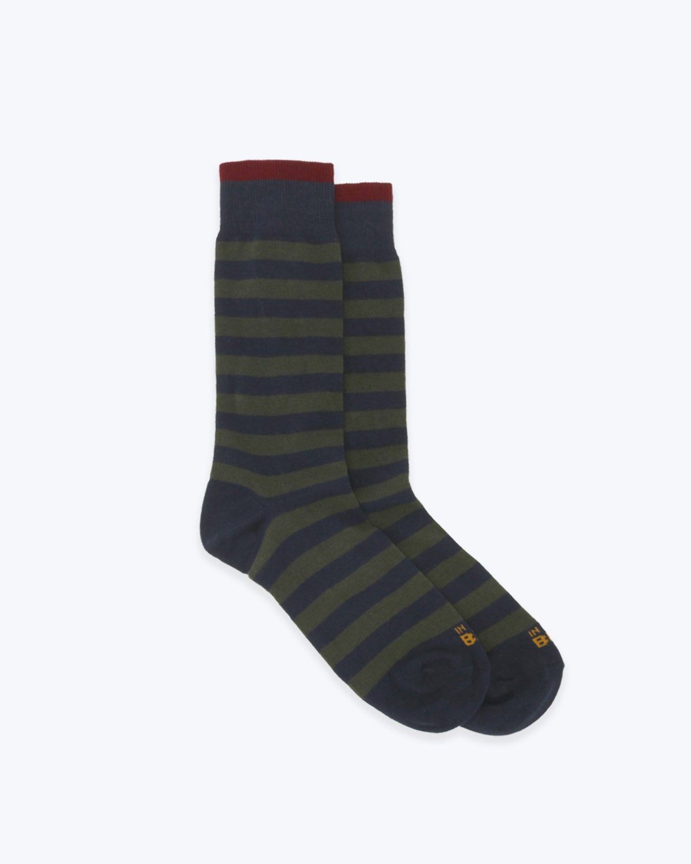 Mid-calf socks , from the Inthebox brand , with blue and military green stripes.