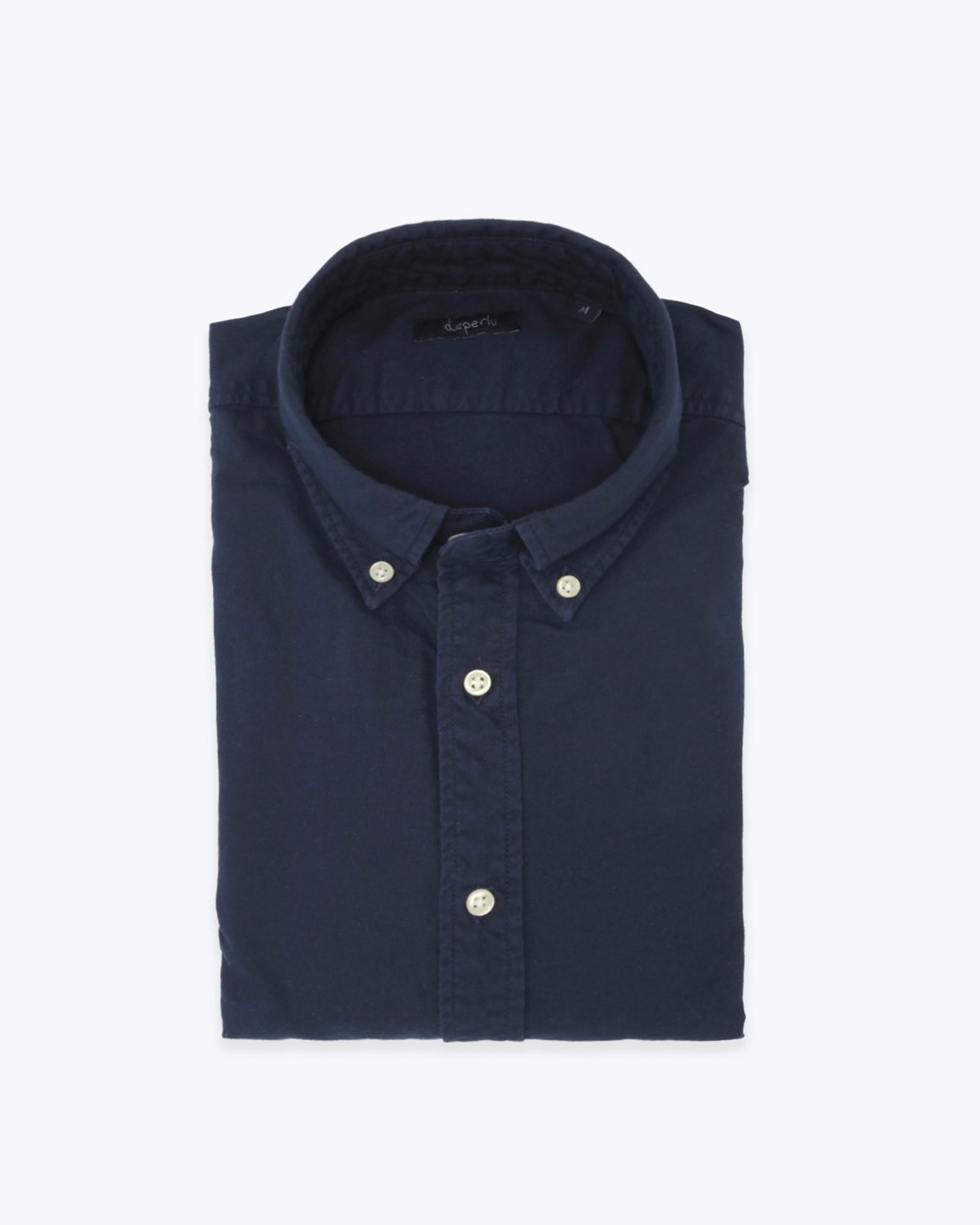 Deperlu brand shirt in navy, with buttoned collar and button placket.