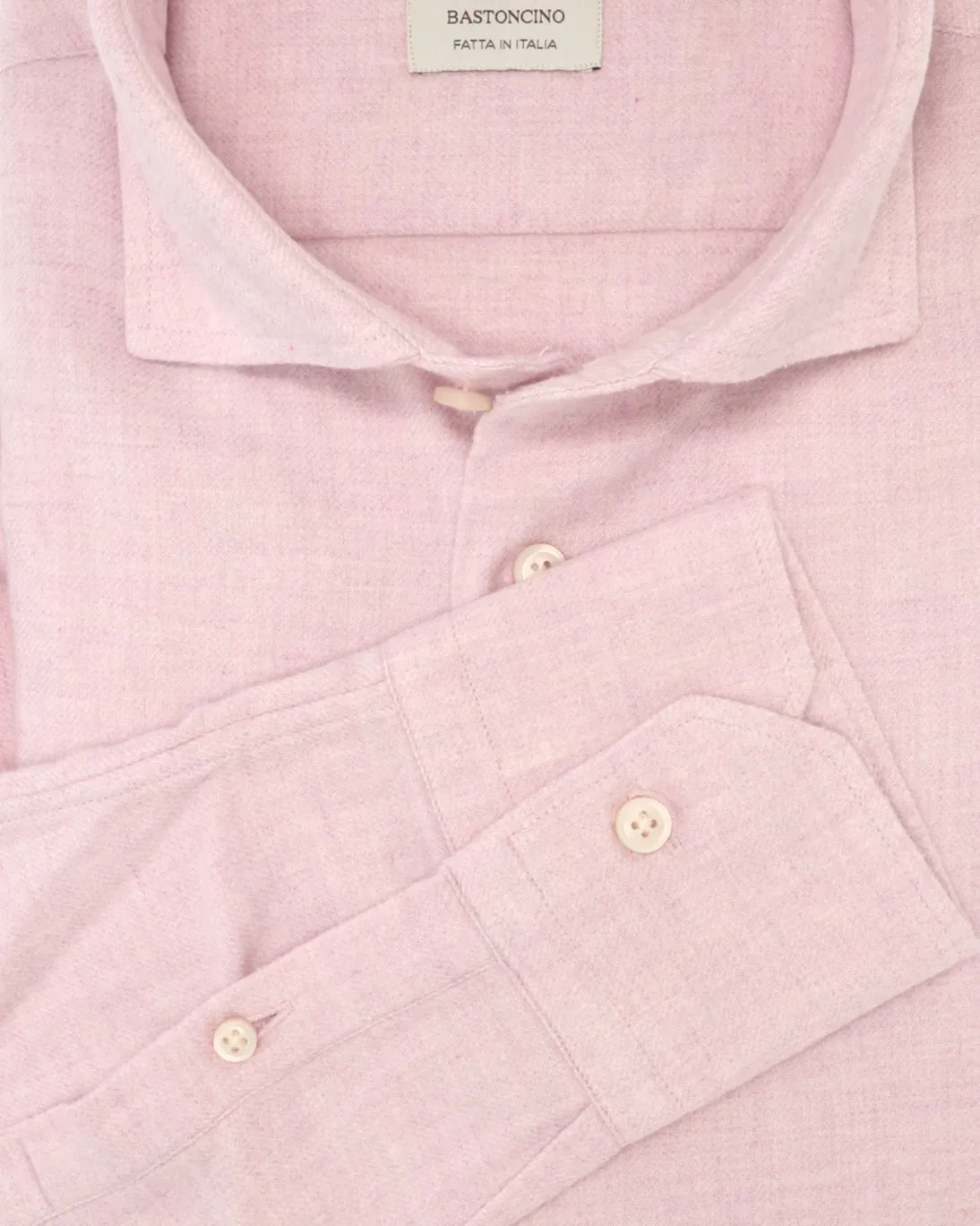 Camisa rosa de la marca Bastoncino, elaborada íntegramente en suave franela de 100% algodón, lo que garantiza una sensación de calidez, suavidad y confort excepcionales.