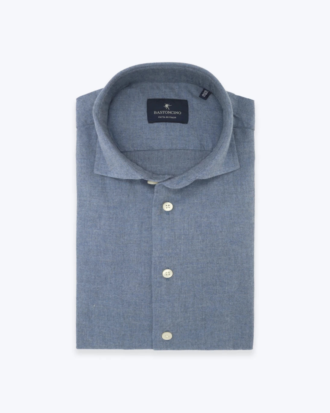Camisa azul de la marca Bastoncino, elaborada íntegramente en suave franela de 100% algodón, lo que garantiza una sensación de calidez, suavidad y confort excepcionales.