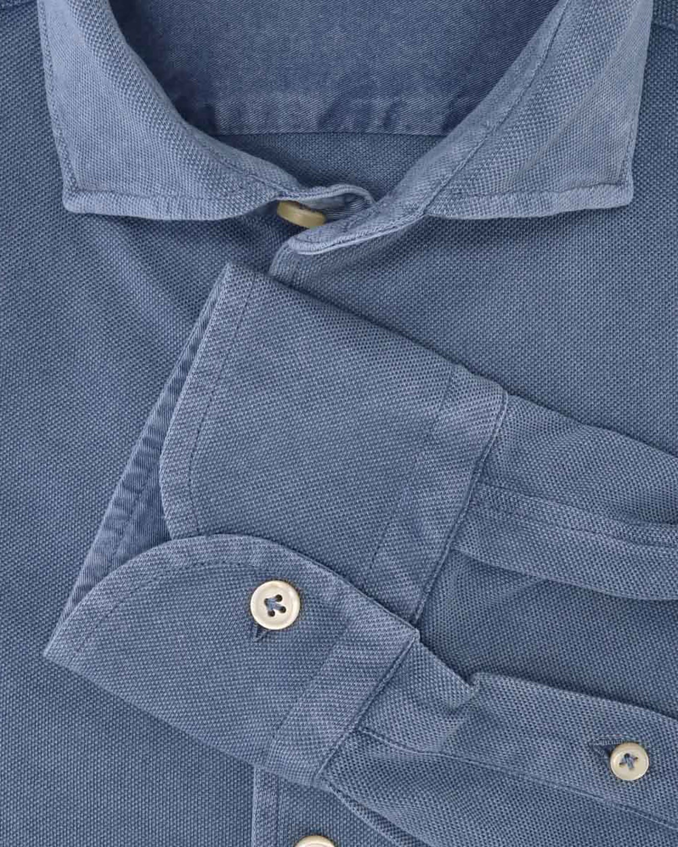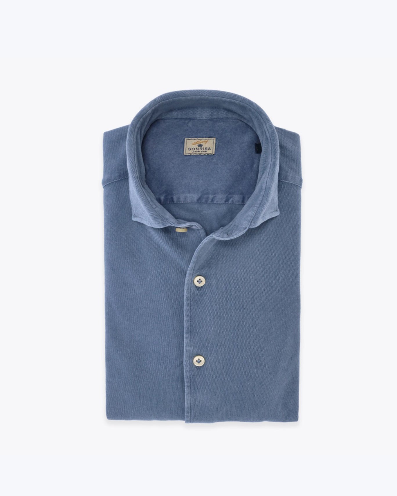 Piqué shirt from the Sonrisa brand in a medium faded blue colour, with a cutaway collar . Made from fine cotton fabric , perfect for spring/summer .