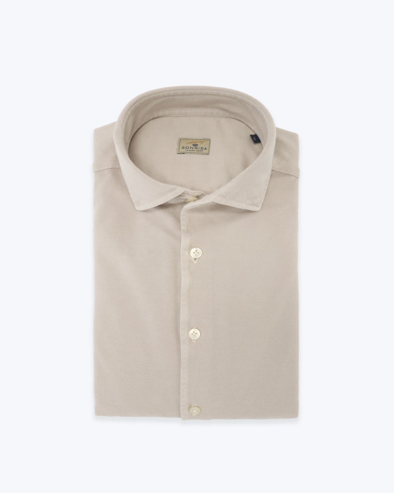 Piqué shirt from the Sonrisa brand in beige , with a cutaway collar .