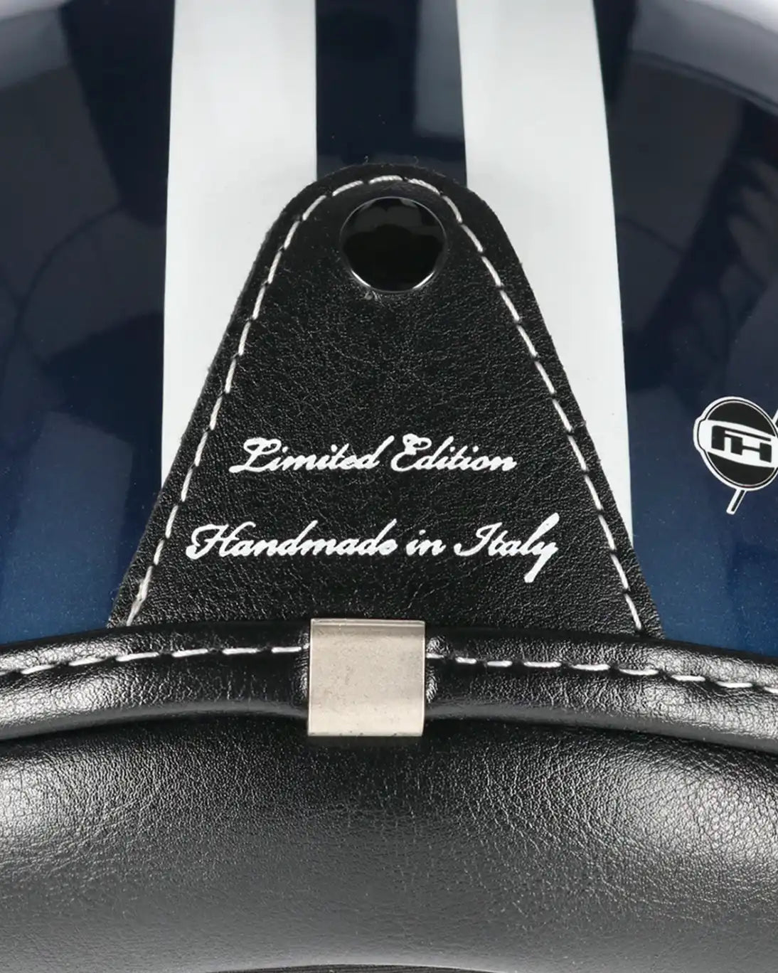 Motorcycle helmet manufactured exclusively for Fulham by the firm FH Italia in blue, with two white stripes.