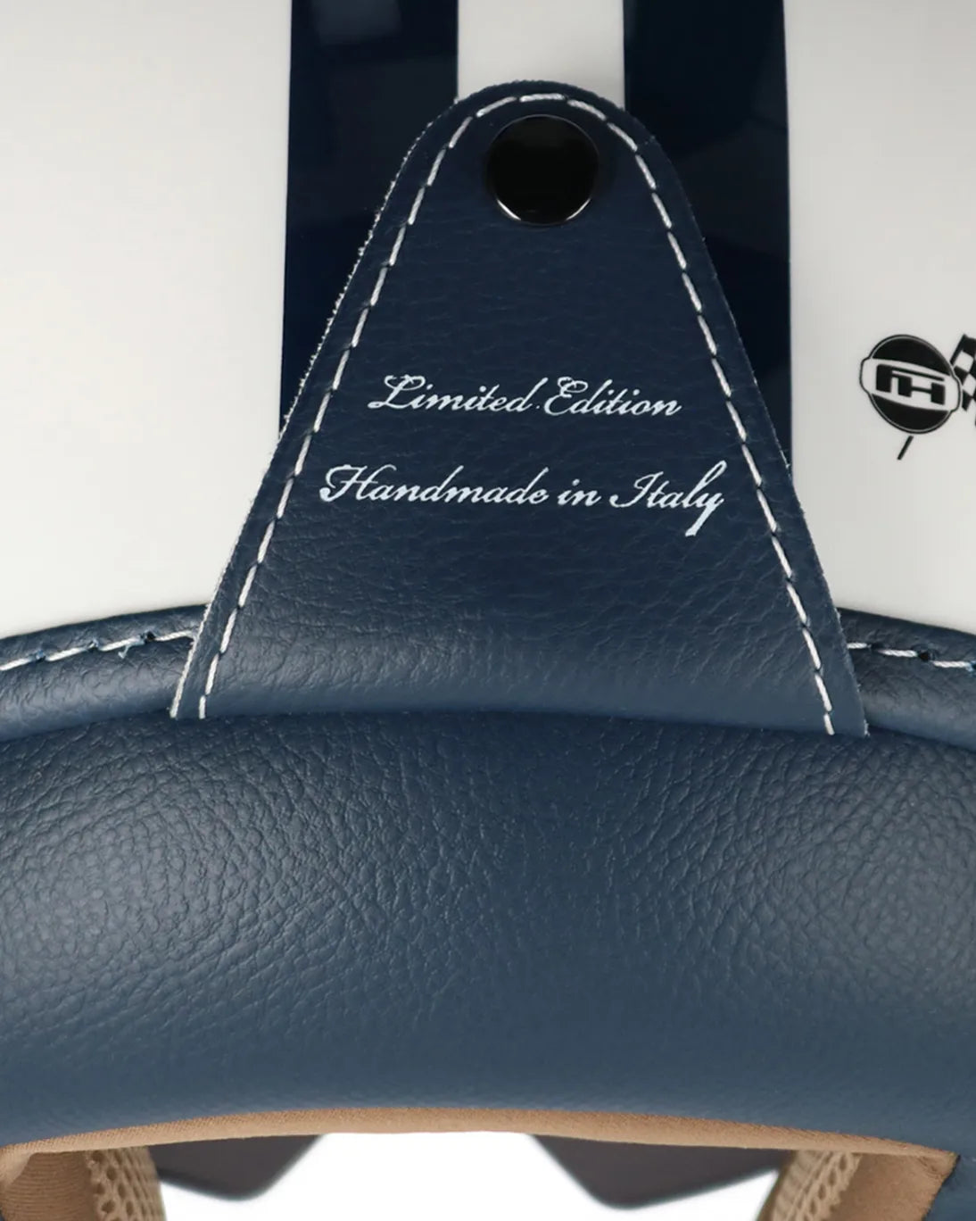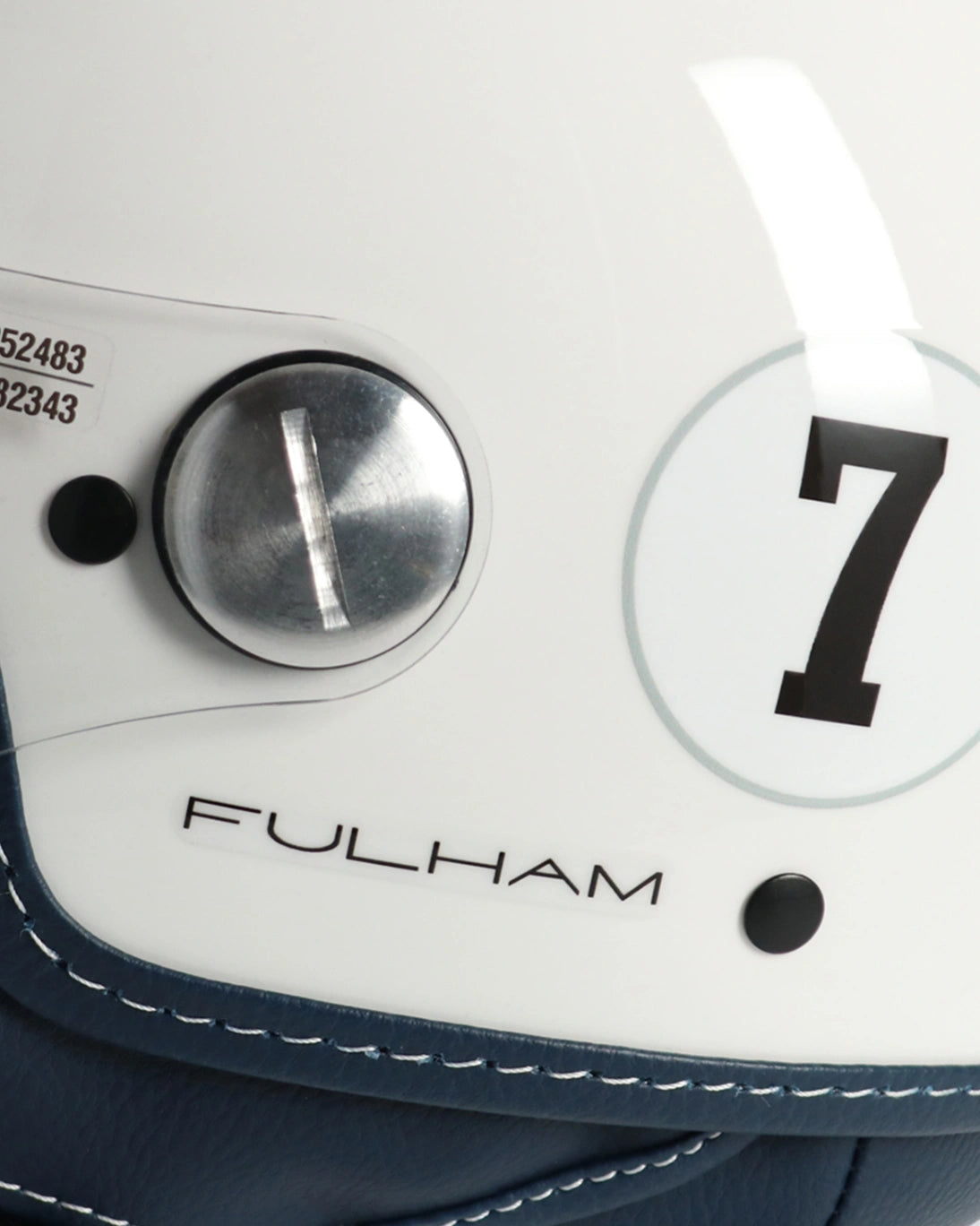 Fulham motorcycle helmet white with double navy blue stripes
