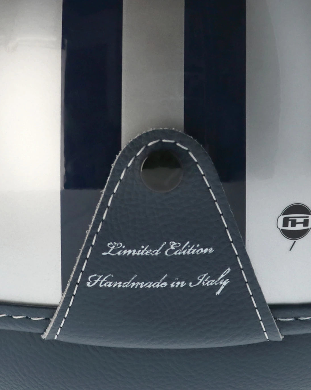 FH Italia brand helmet manufactured exclusively for Fulham , in grey with two blue stripes.