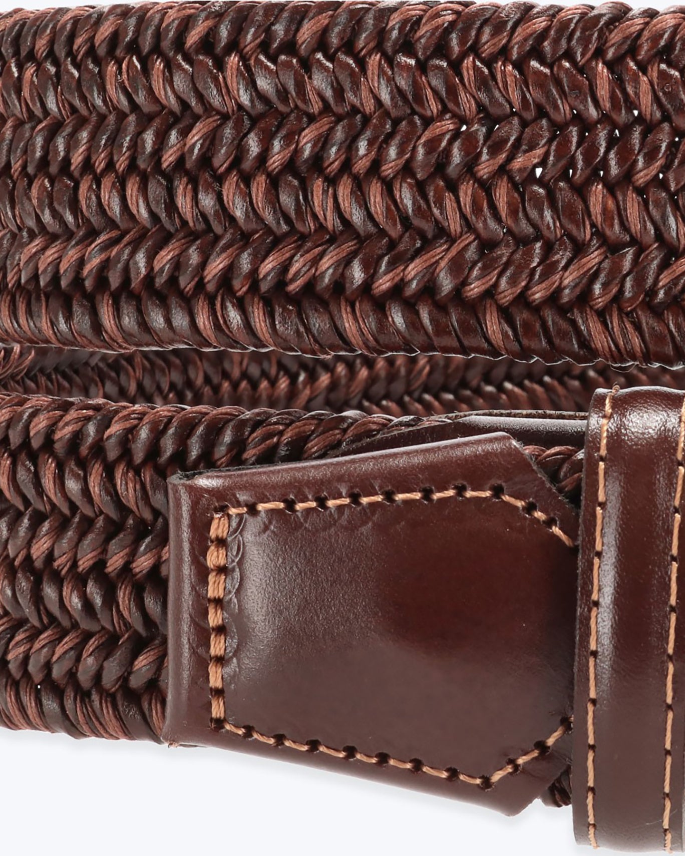 Elastic belt from the Athison brand, braided, combining brown with brown leather details.