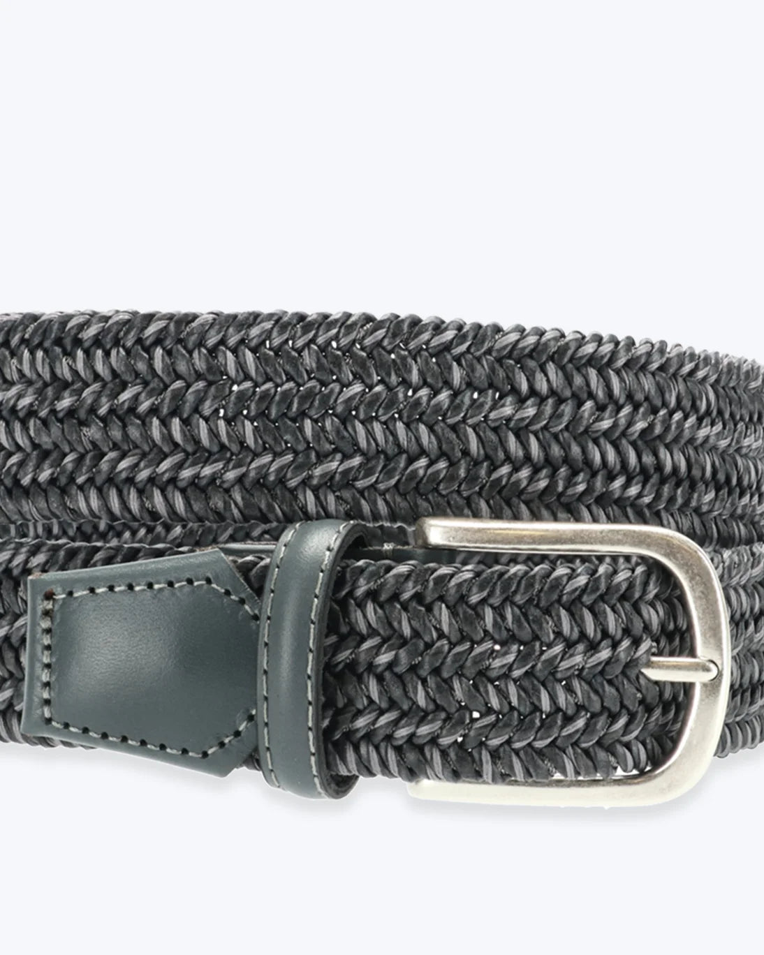 Braided elastic belt from the brand Athison, in a combination of lighter and darker greys.