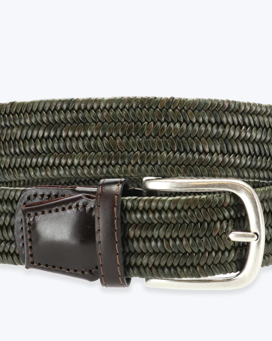 Braided elastic belt from the brand Athison, in dark green.