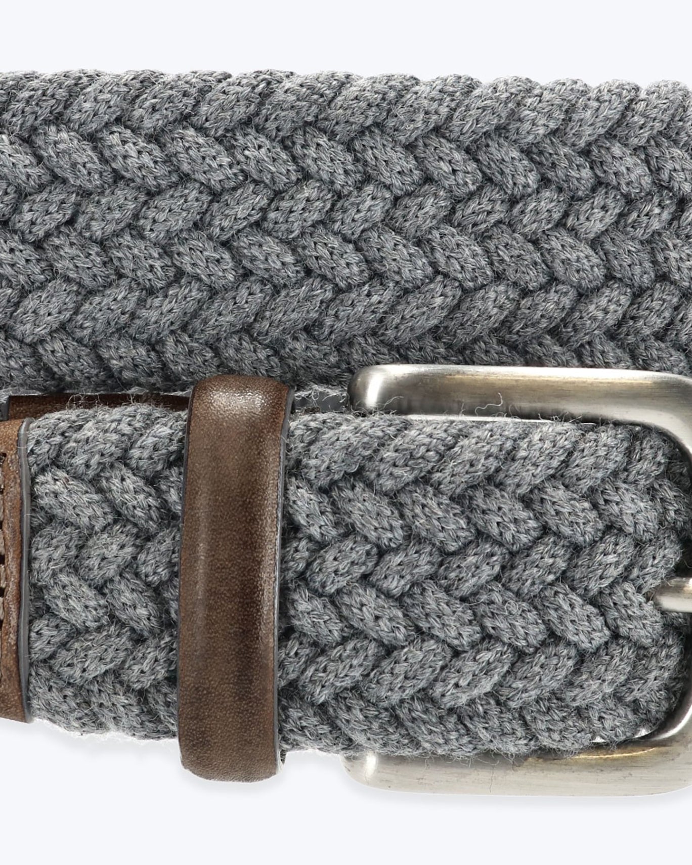 Gavazzeni brand elastic braided belt in grey , with leather details.