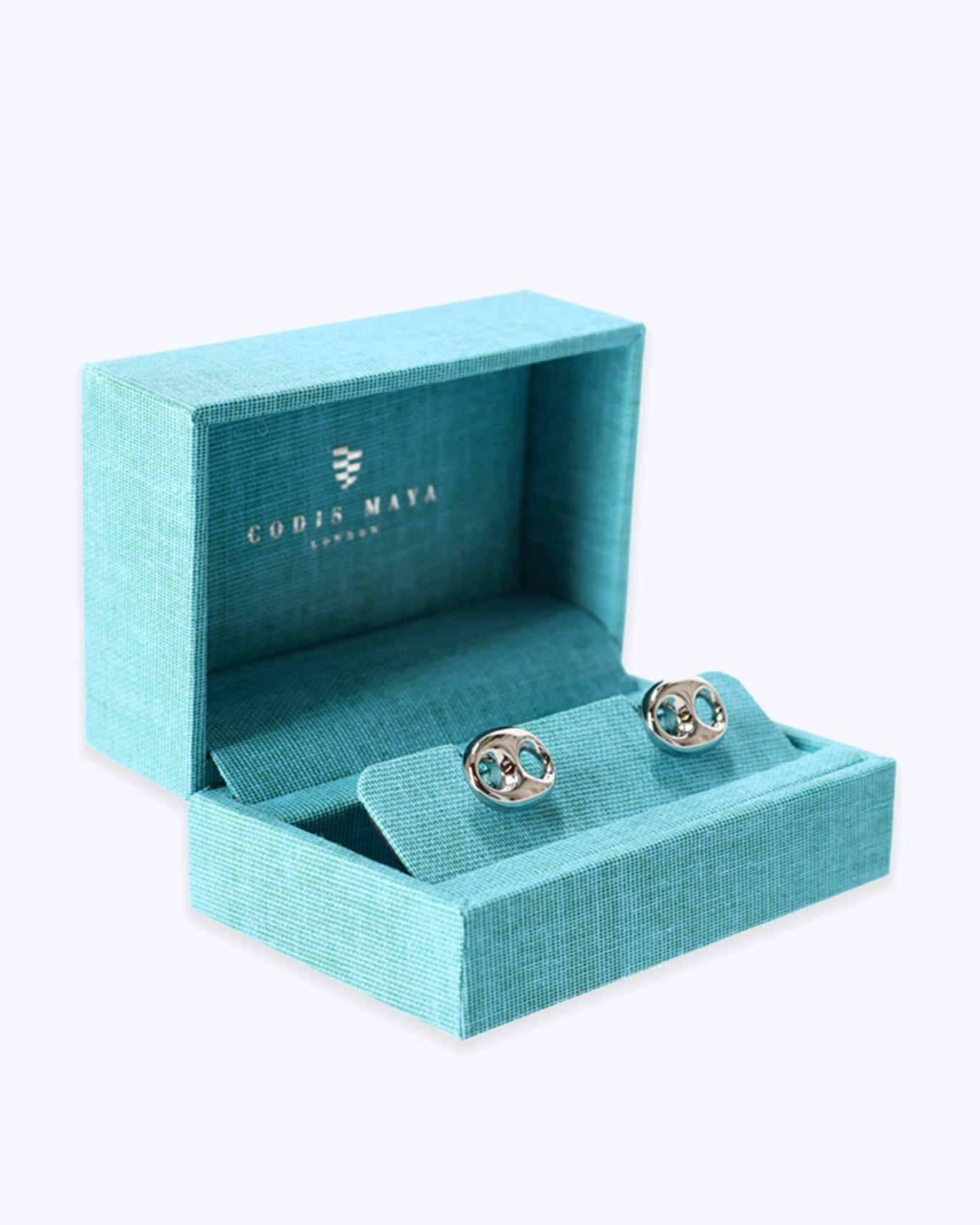 Codis Maya brand cufflinks, made of solid silver with an elegant rhodium plating. With dimensions of 10 mm x 4 mm.