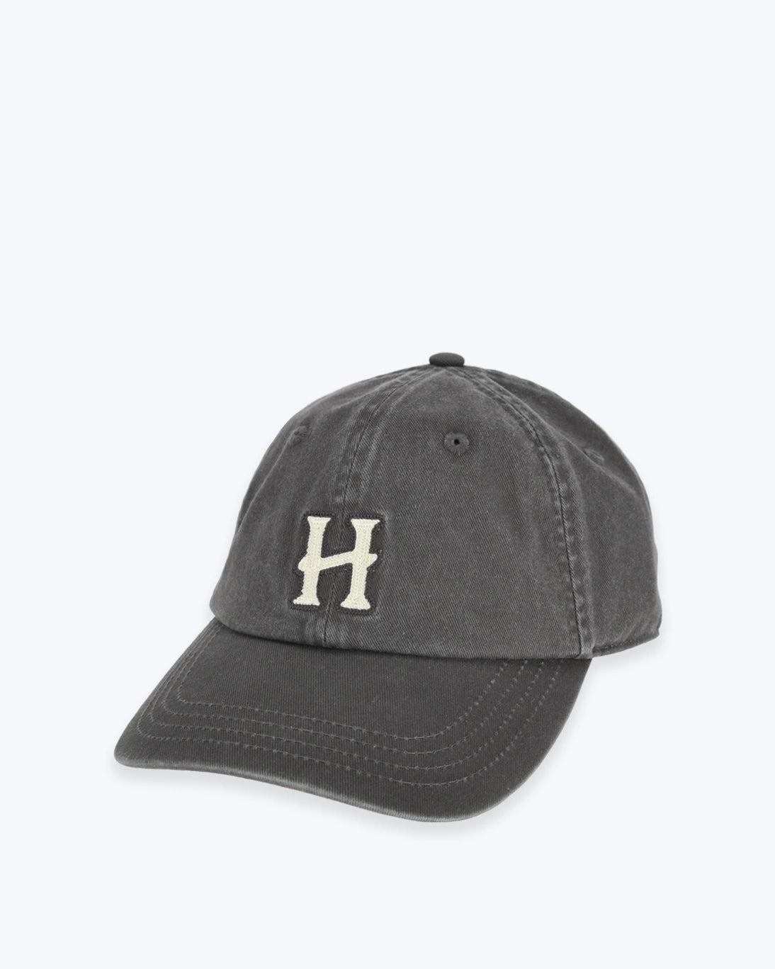 En la parte frontal tiene la letra 'H' bordada en color crema con borde oscuro. Cuenta con una pinza metálica ajustable en la parte trasera para adaptarla a la cabeza.