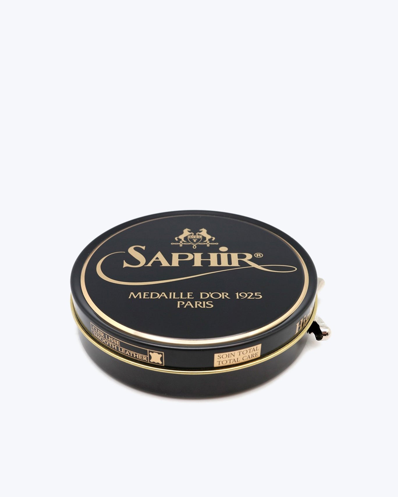 Dark brown leather care tin from Saphir.