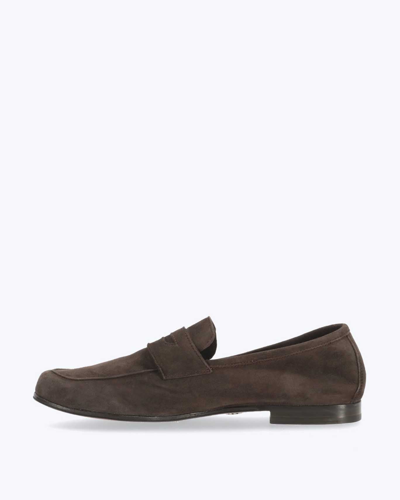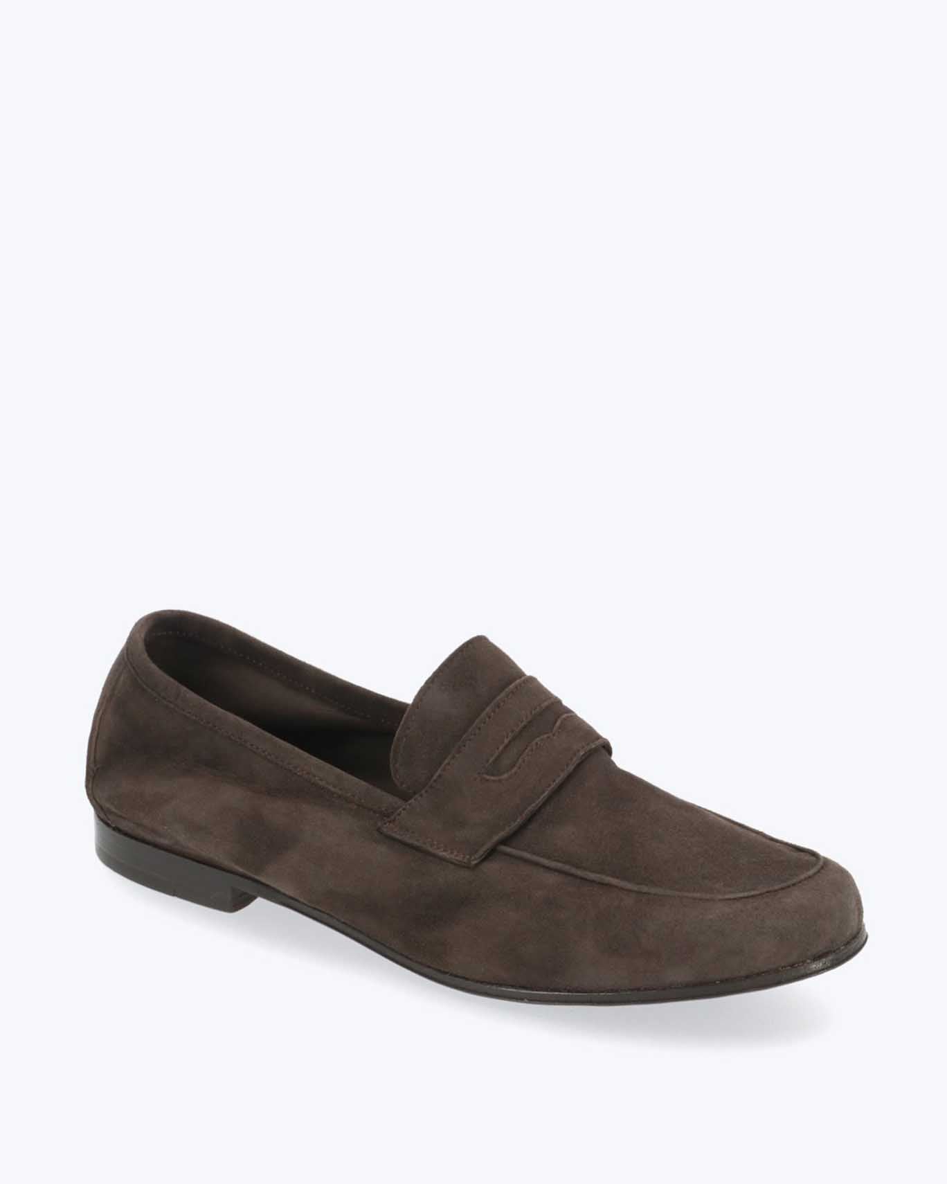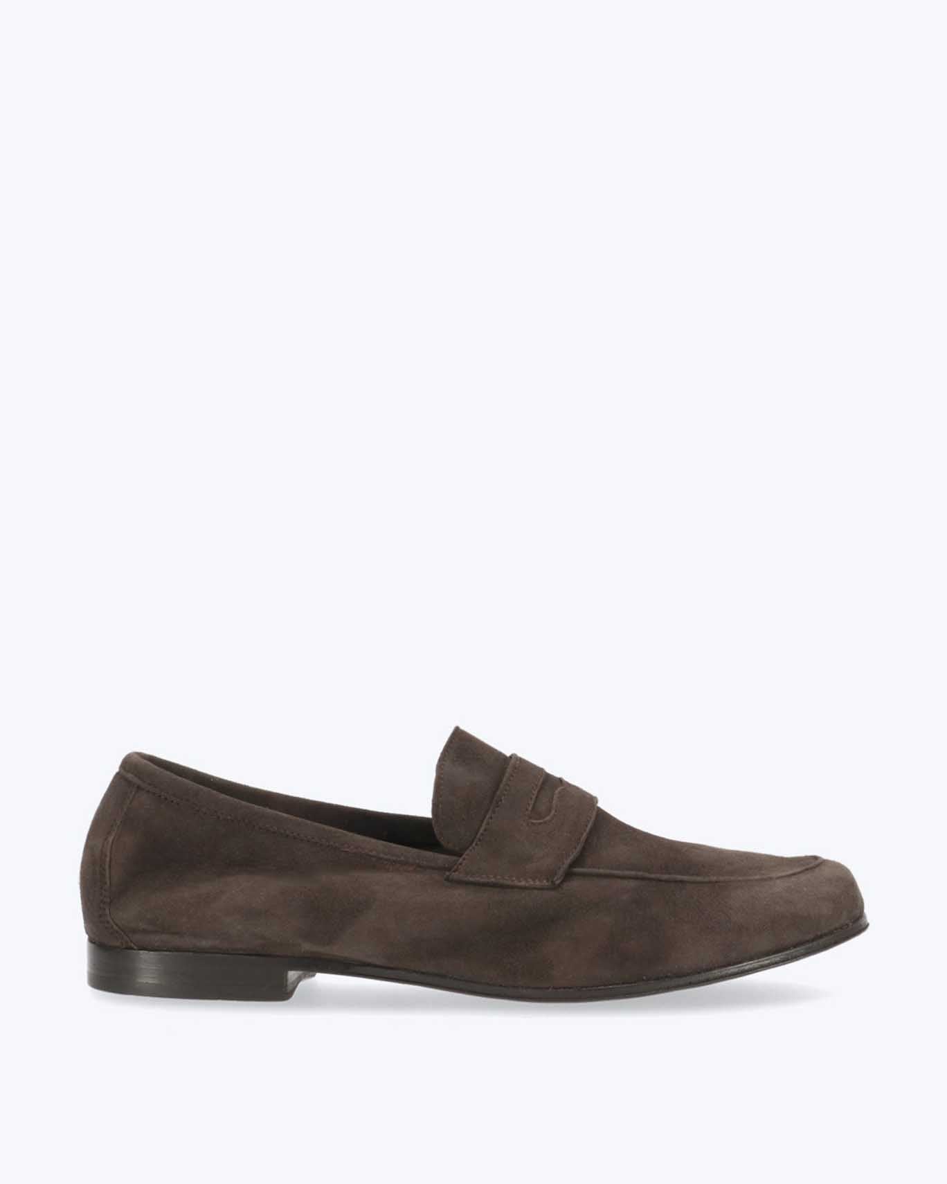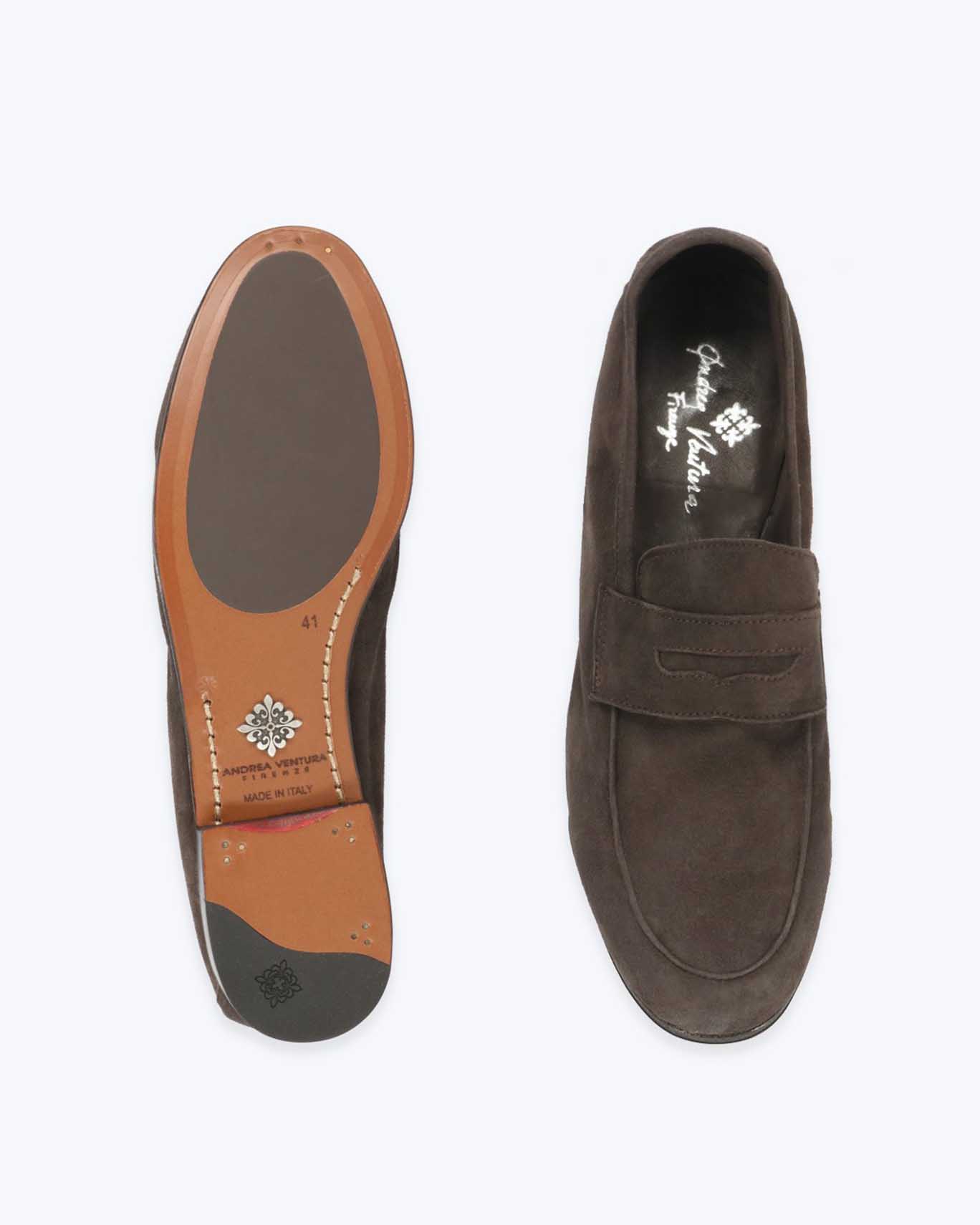 Loafer from the Italian brand Andrea Ventura in brown suede. The toe is rounded and the sole is made of leather.