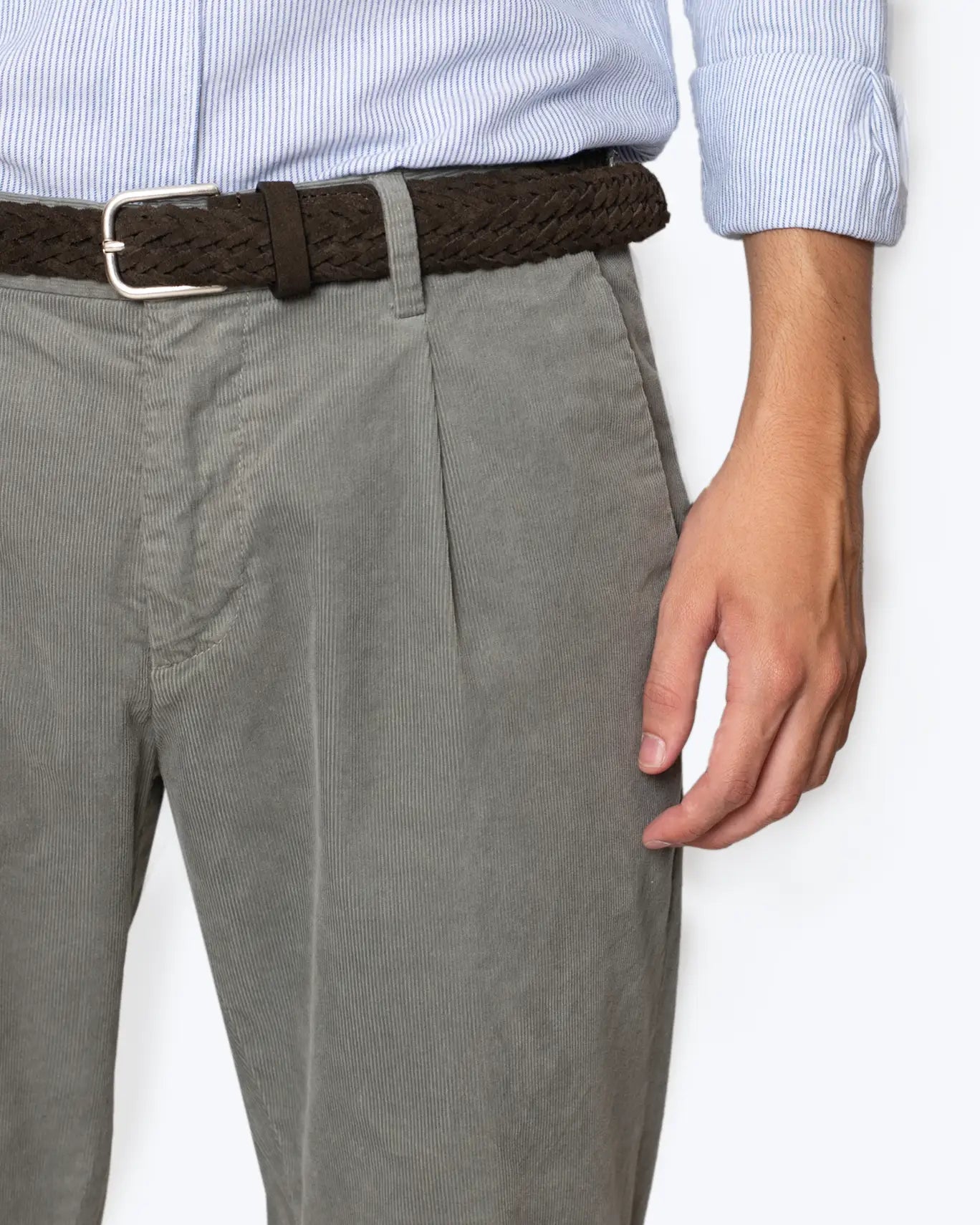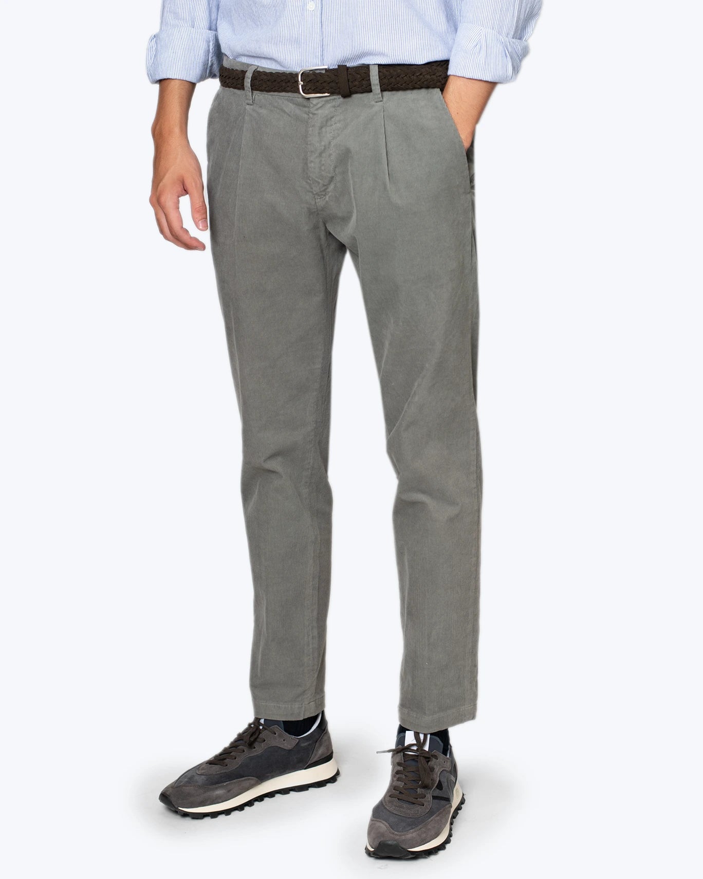 Pantalón chino de pana con pinzas, de la marca AT.P.CO, en color gris.