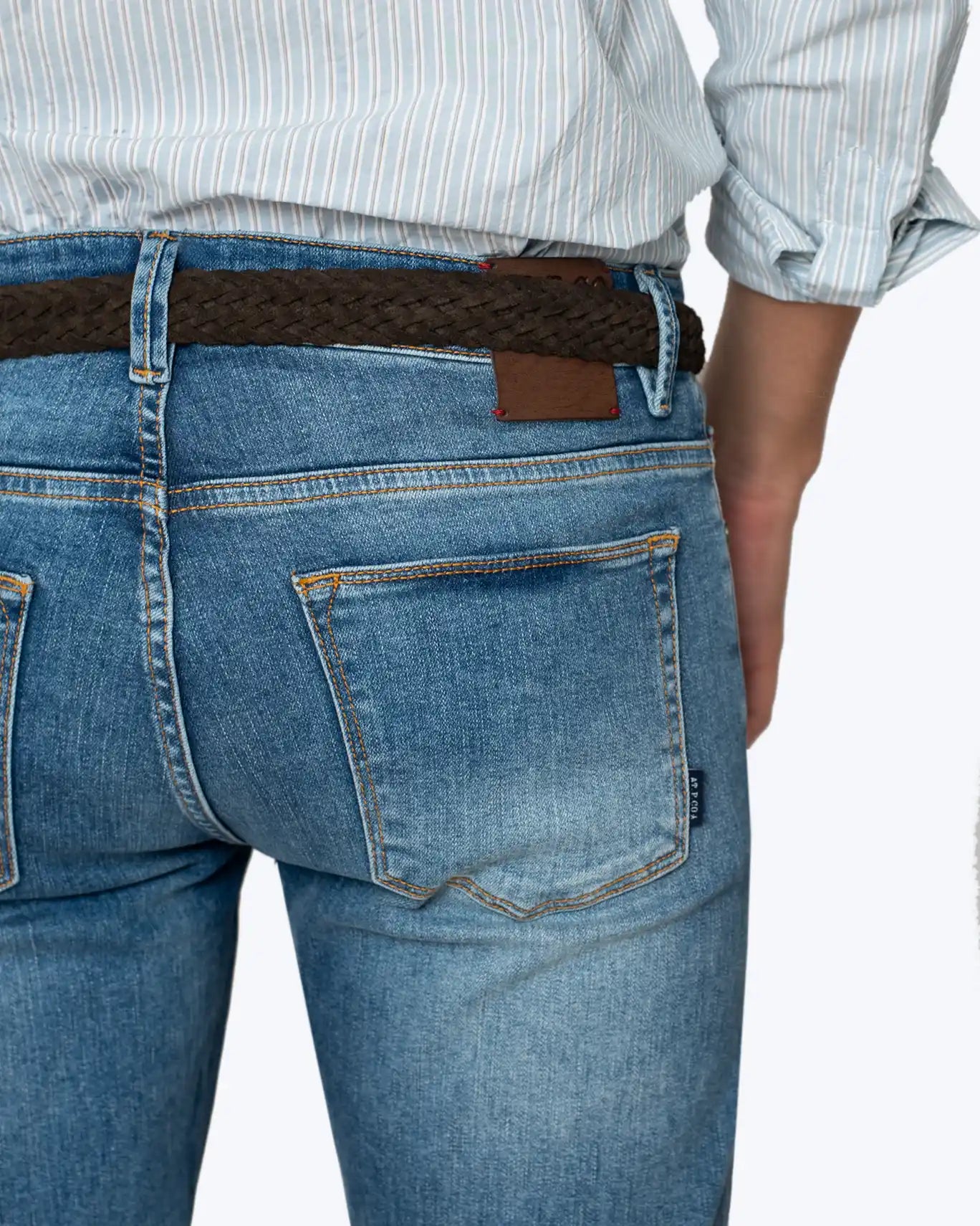 Presentan un corte regular slim fit. La pernera se va estrechando ligeramente hasta el tobillo para estilizar la pierna, pero sin quedar ajustado.