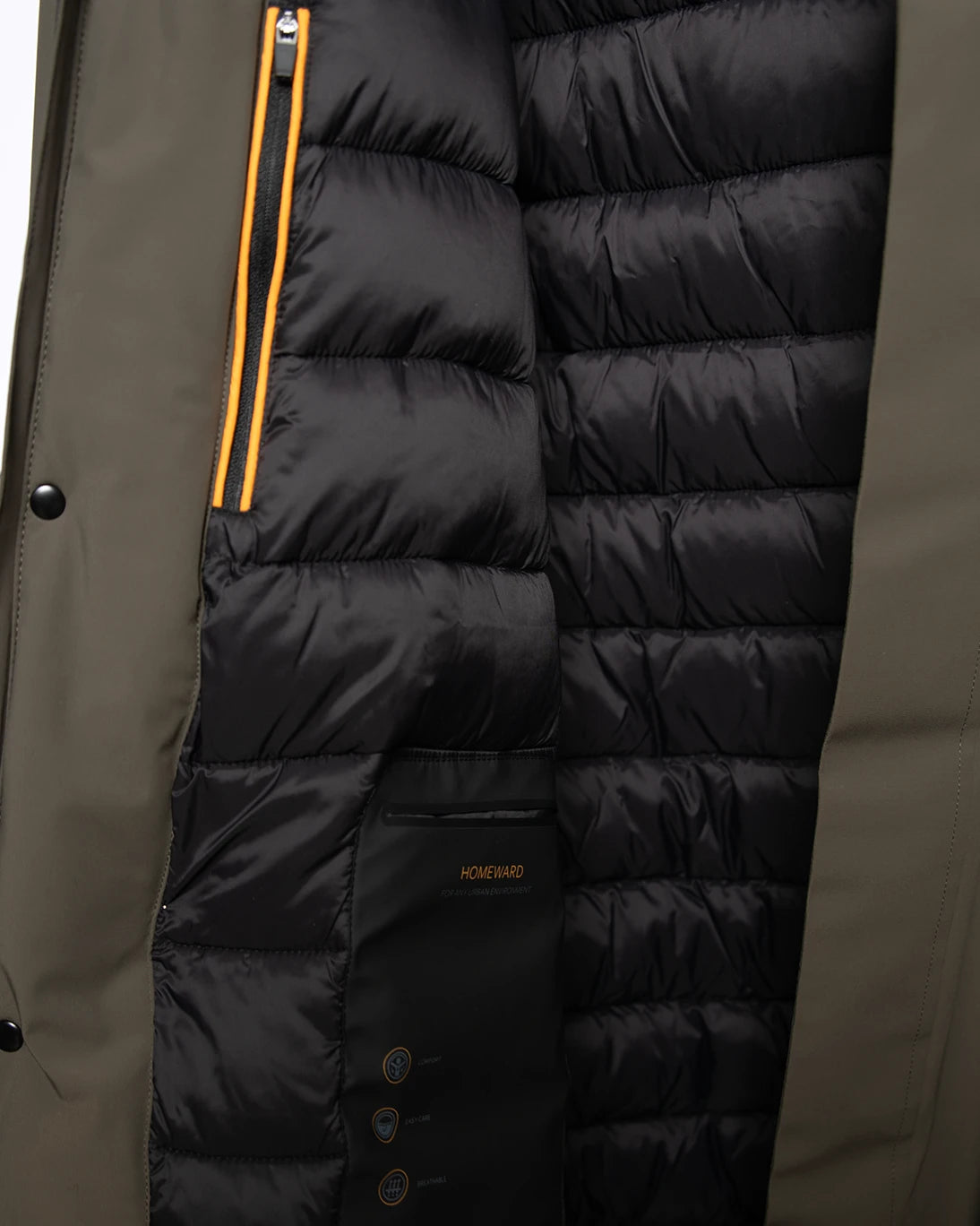 Parka verde con capucha desmontale mediante cremallera de la marca Homeward.
