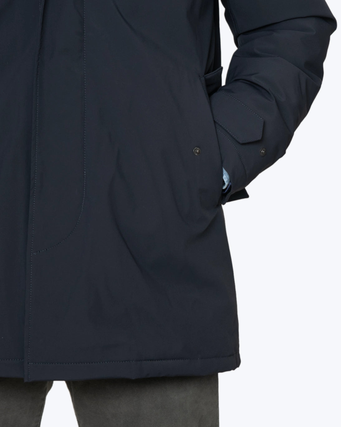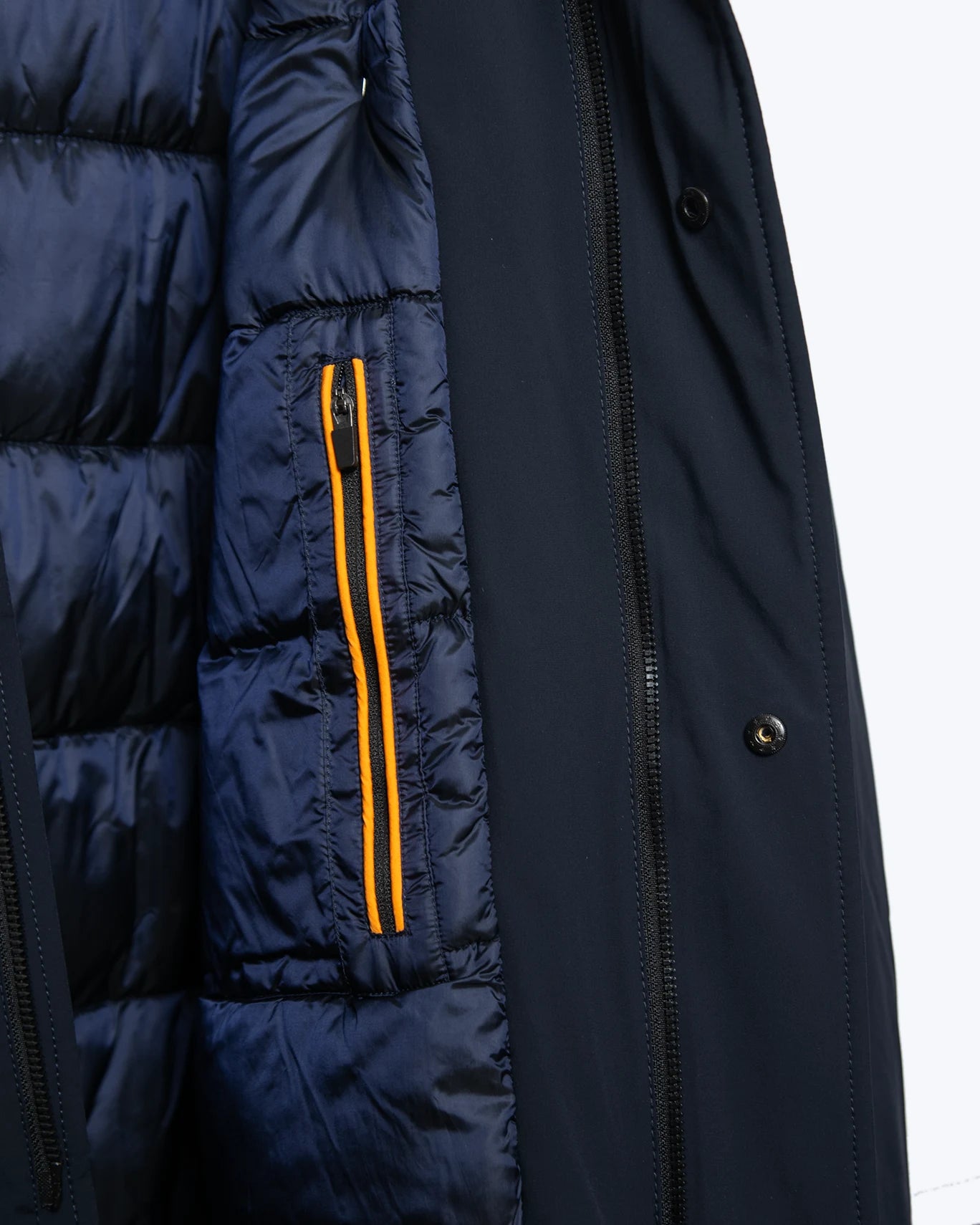 Incorpora un cierre frontal de cremallera bidireccional termosellada protegida por una tapeta con botones automáticos. Dispone de bolsillos laterales forrados en forro polar con botón automático y dos bolsillos interiores adicionales, ideales para guardar objetos personales.