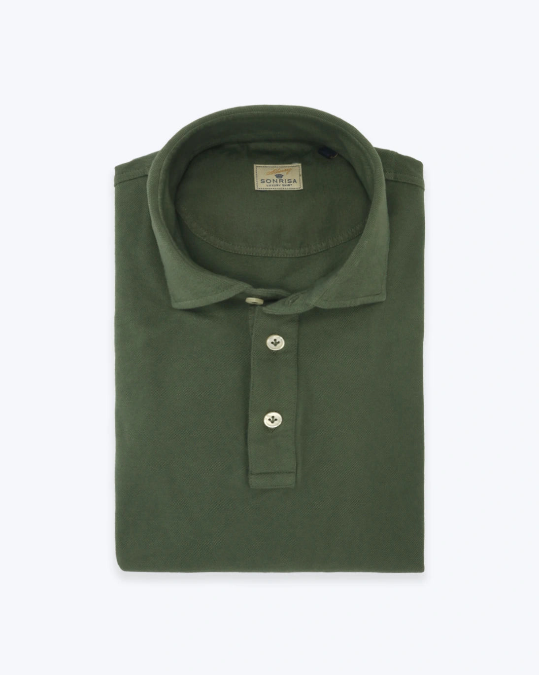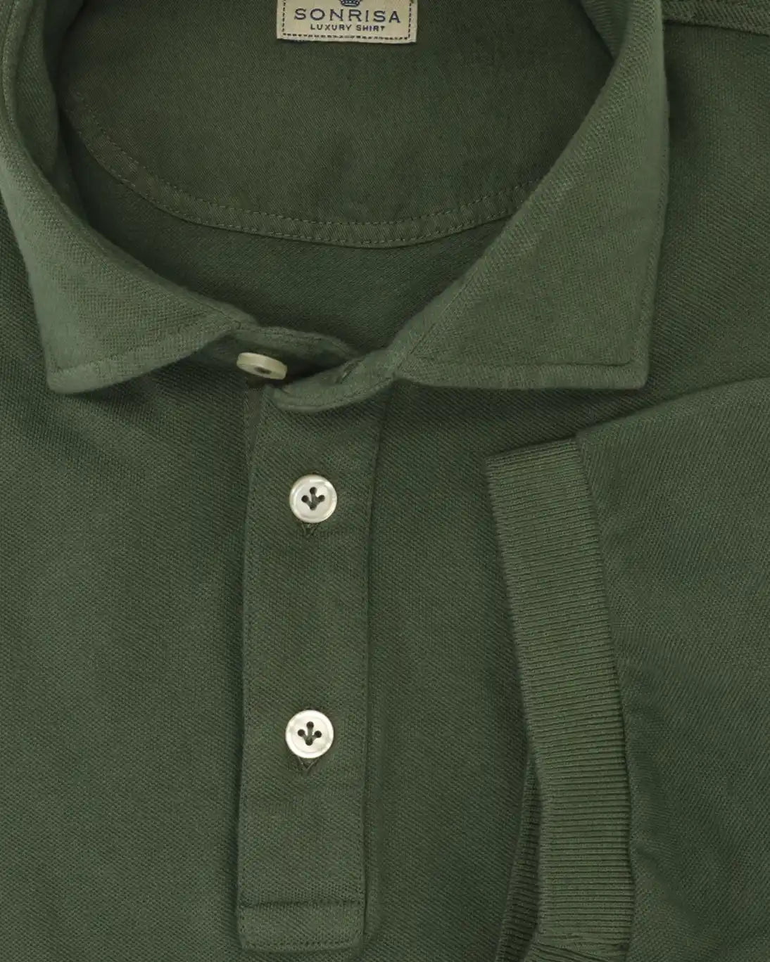 Short-sleeved piqué polo shirt from the brand Sonrisa in dark green.