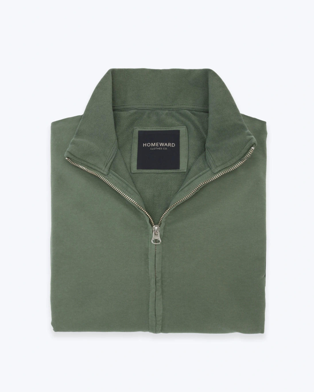 Homeward brand sweatshirt in green. It has a zip fastening and side pockets. In addition, the cuffs and the bottom are elasticated.