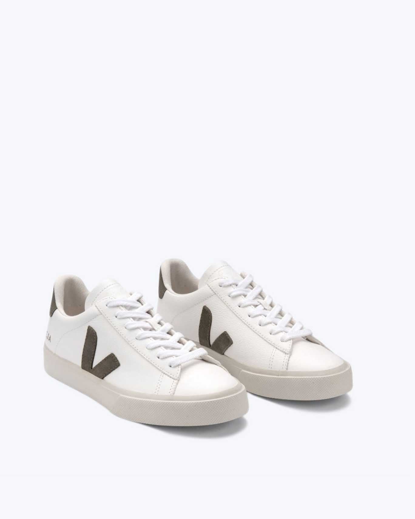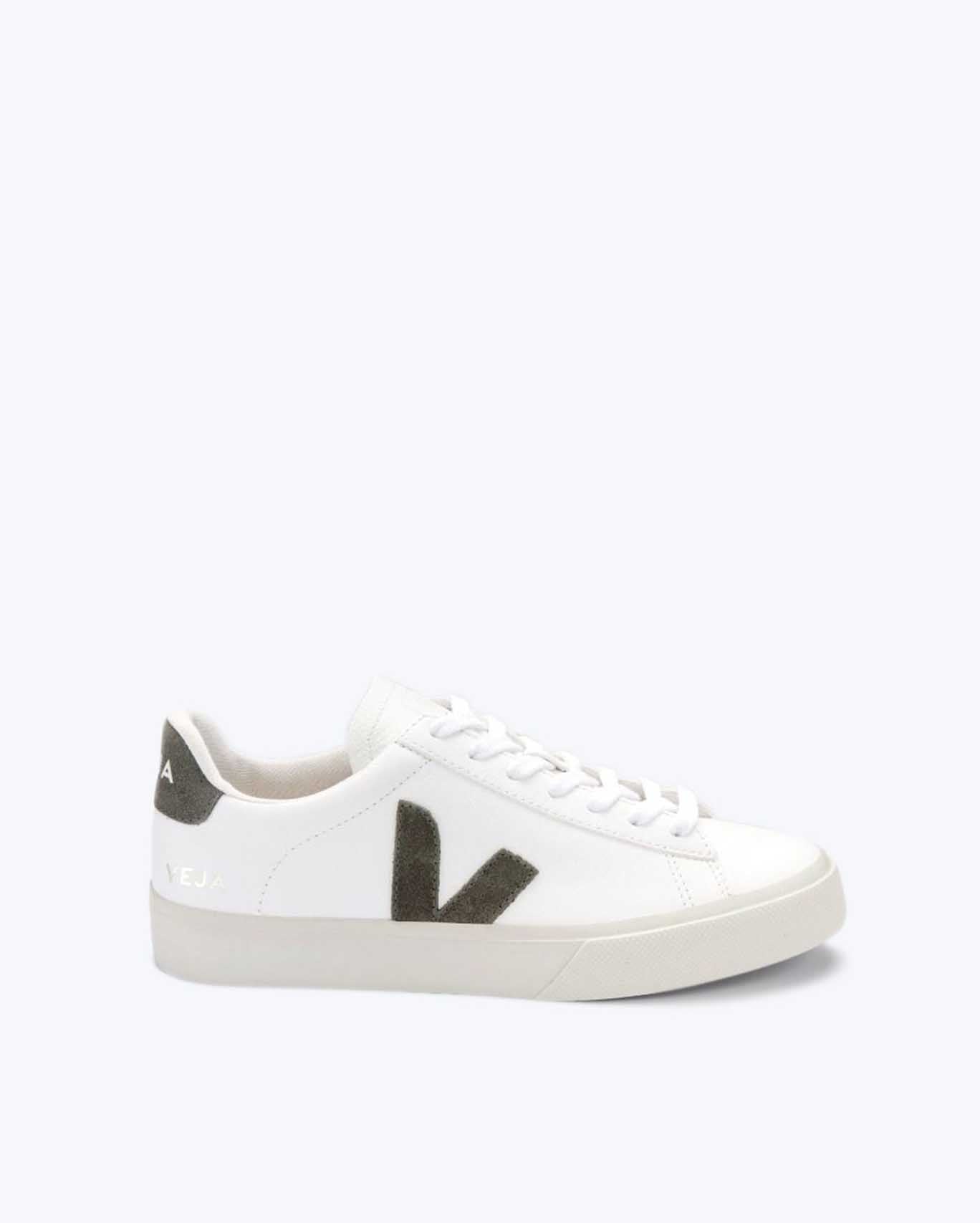 Veja brand sneakers, Urca model , made of white leather , with khaki details .