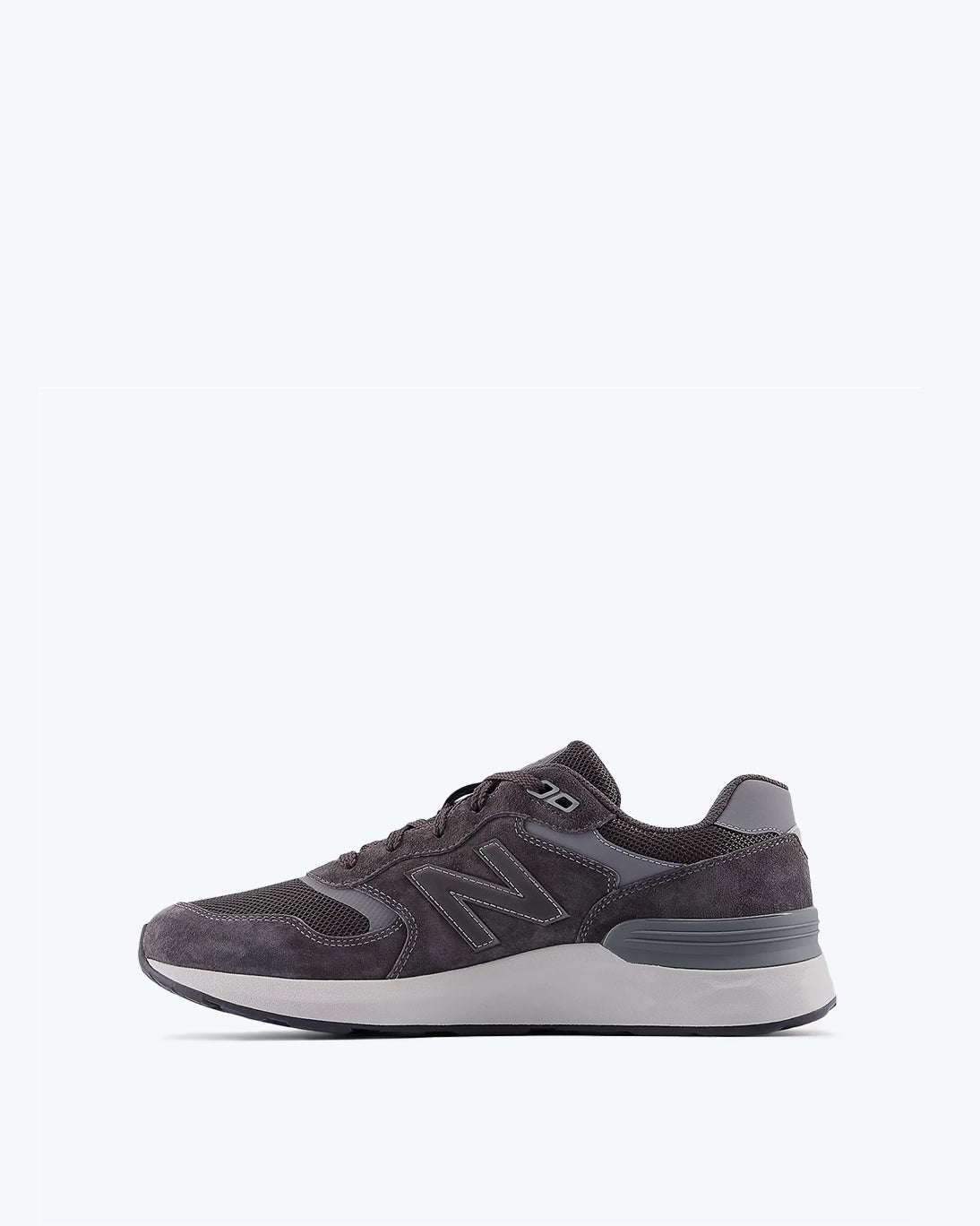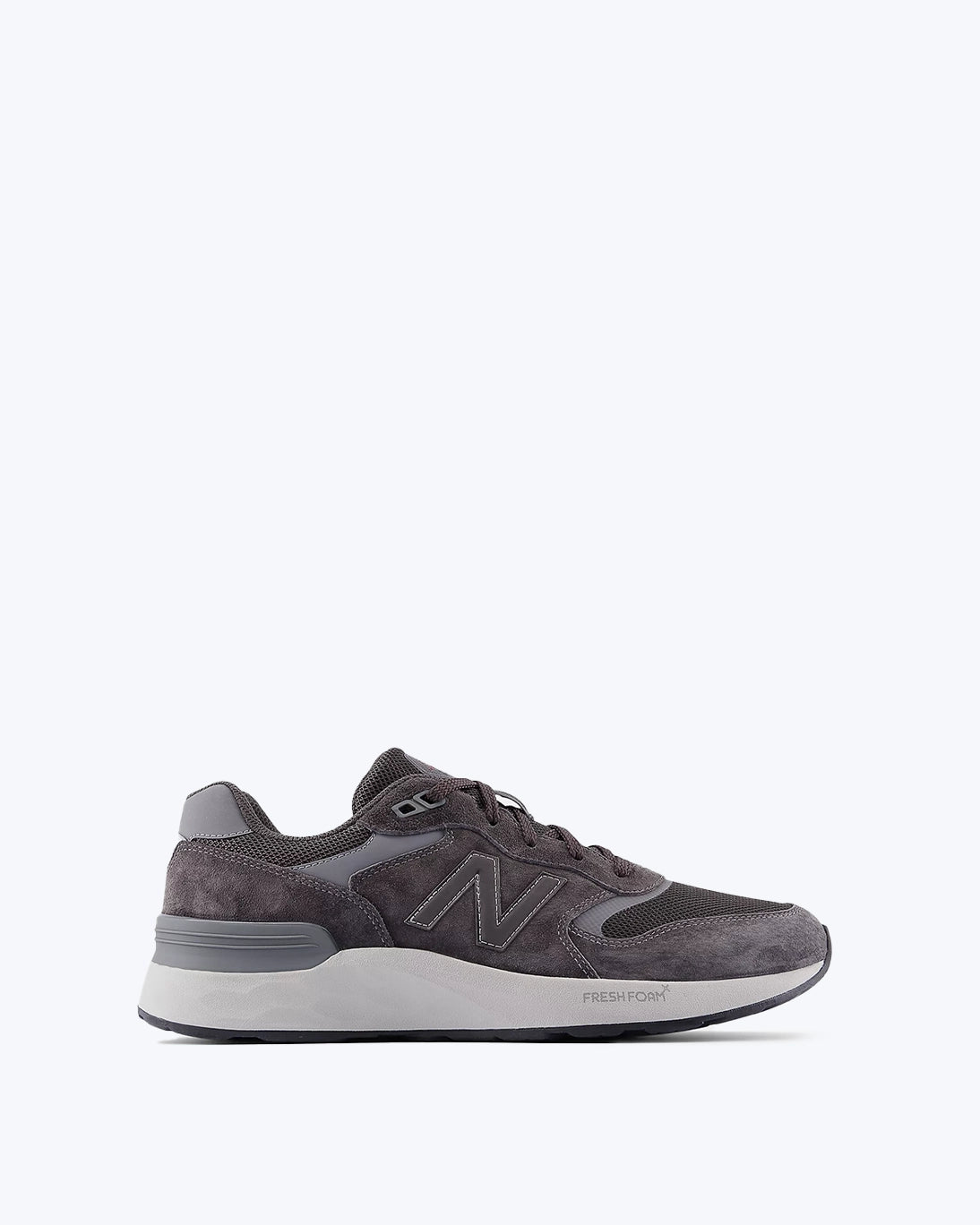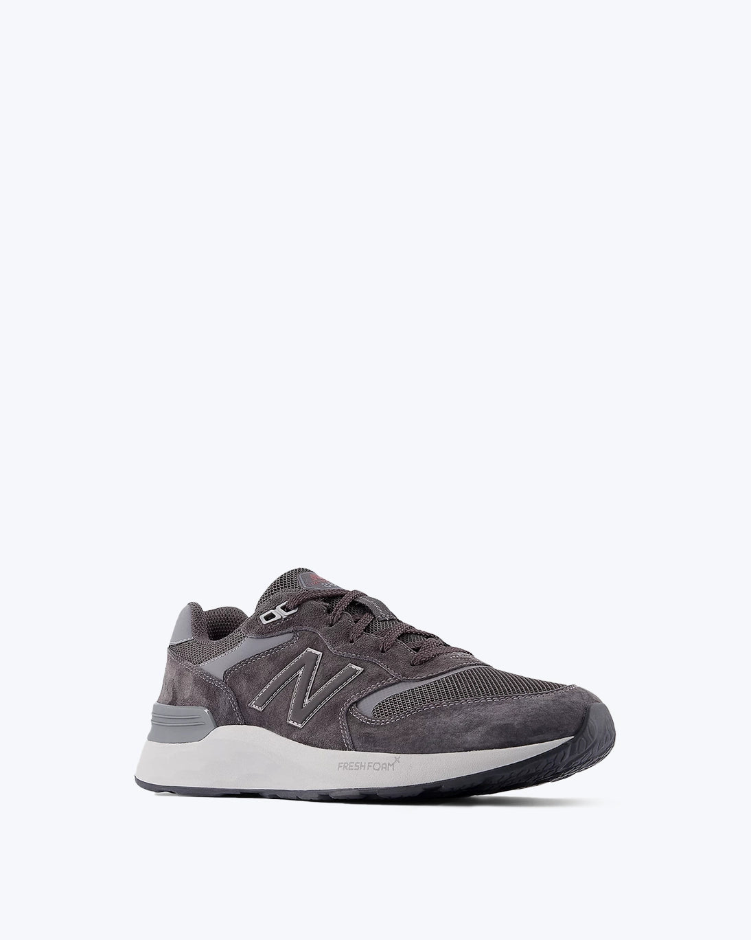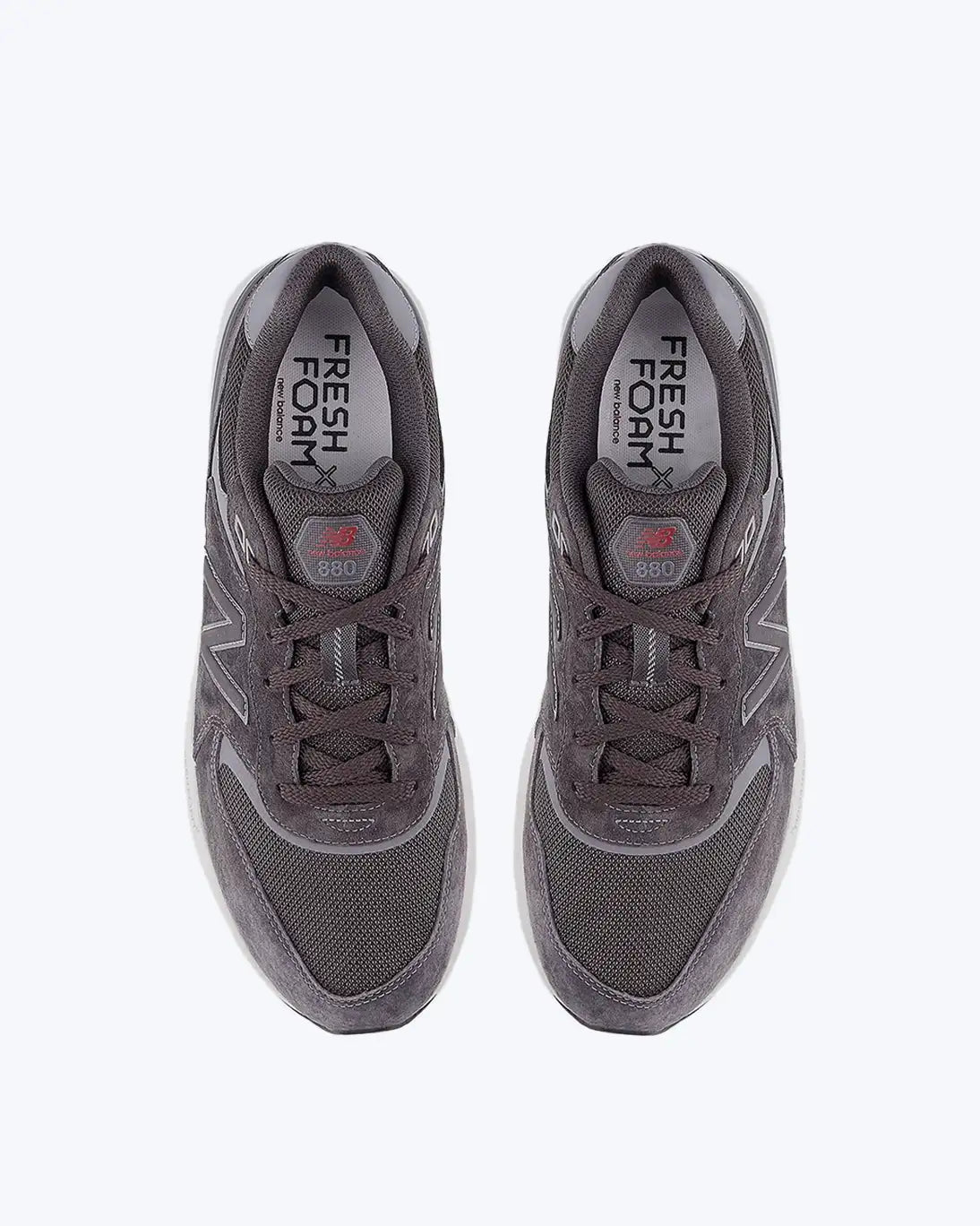 Zapatillas grises de la marca New Balance modelo Fresh Foam walking 880 v7, confeccionada en Pig Suede y malla, ligera y transpirable, con un peso de 325 g.