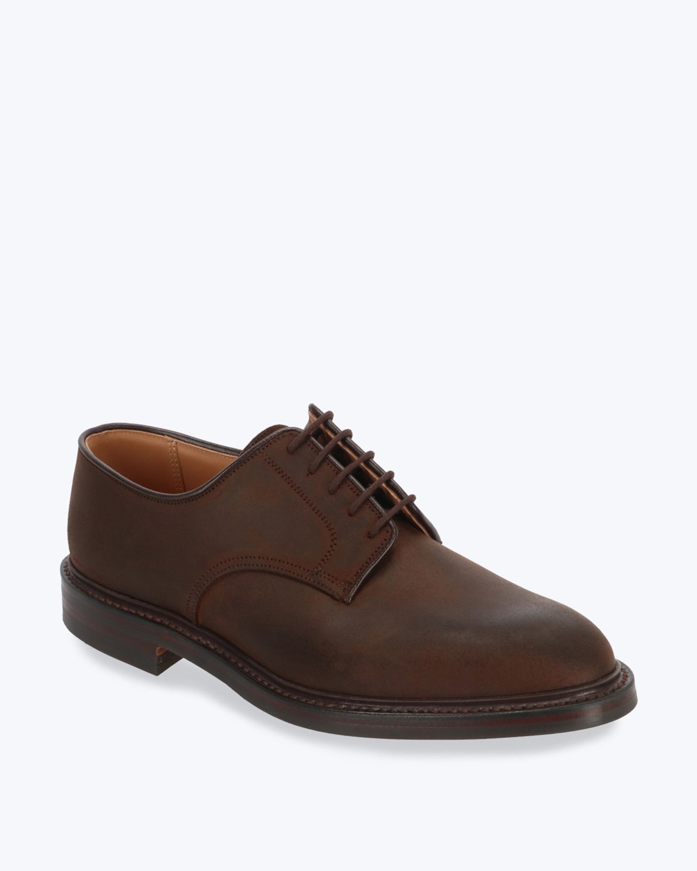 Rough out suede in dark brown , a durable waxed and waterproof leather , the most casual of those offered by Crockett & Jones.
