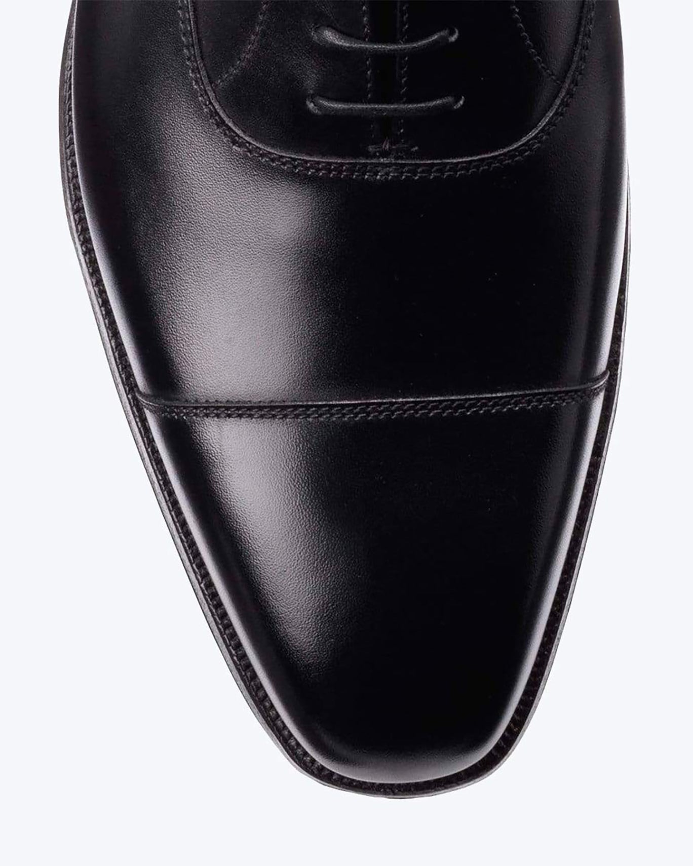 Burnished calfskin . Black colour. Leather sole . Standard width (E), but it is possible to order it in double width (F).