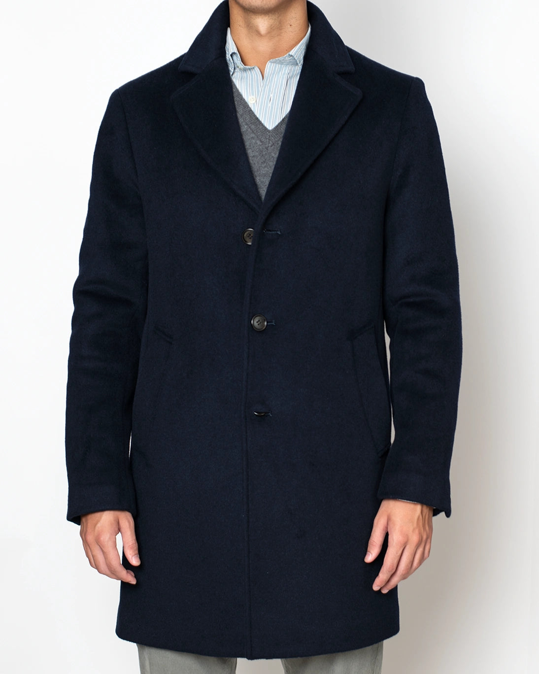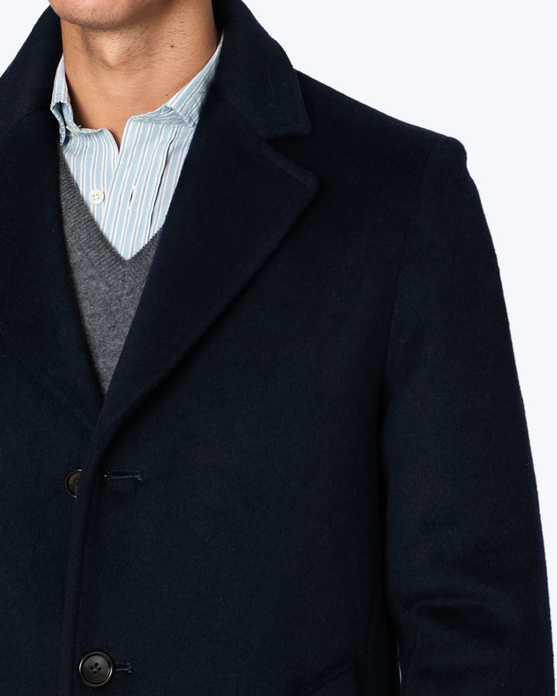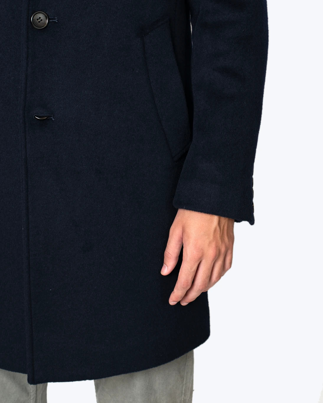 Abrigo de lana azul marino de la firma Seventy, confeccionado en un tejido suave de lana, ideal para los días fríos.