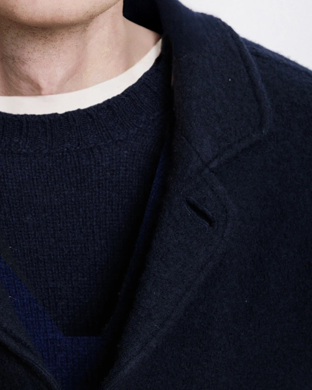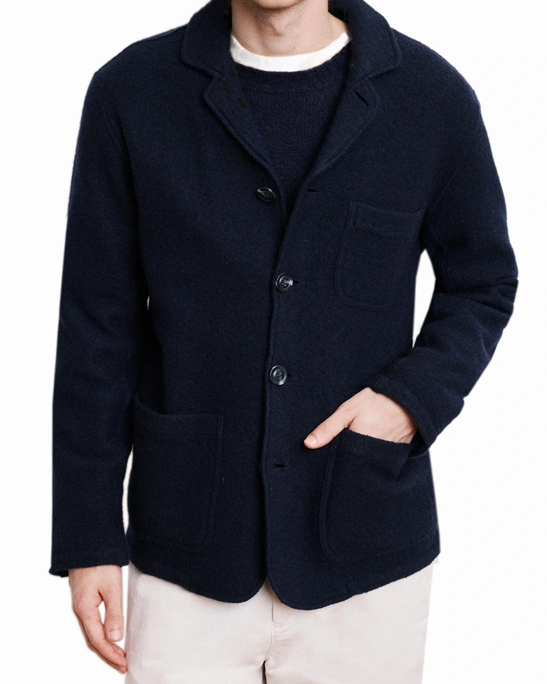 Blazer de lana azul marino de la marca Hartford, perfecta para días fríos.