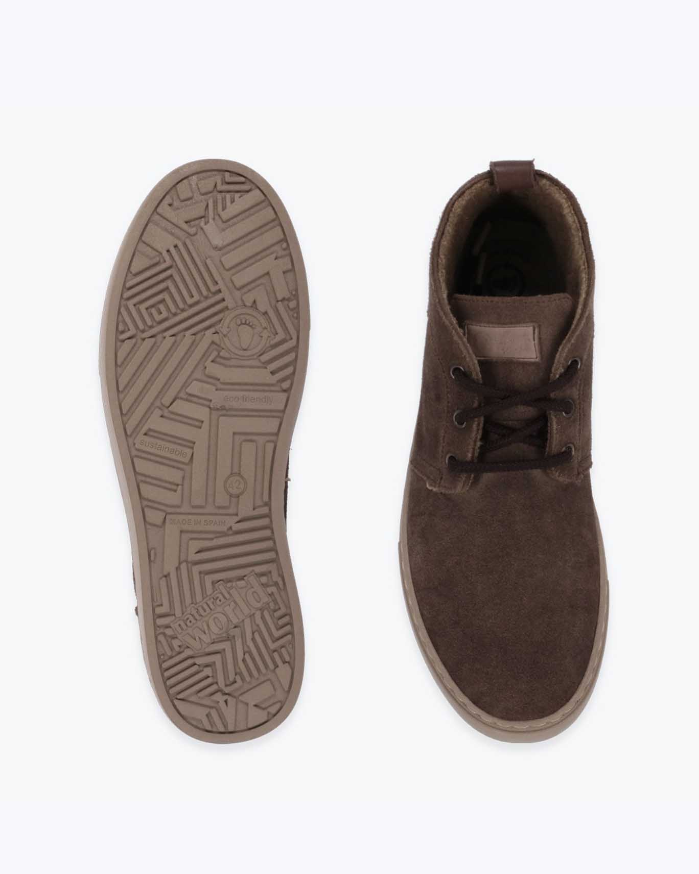 Bottes Natural World Eco, en cuir suédé marron et semelle en caoutchouc naturel.