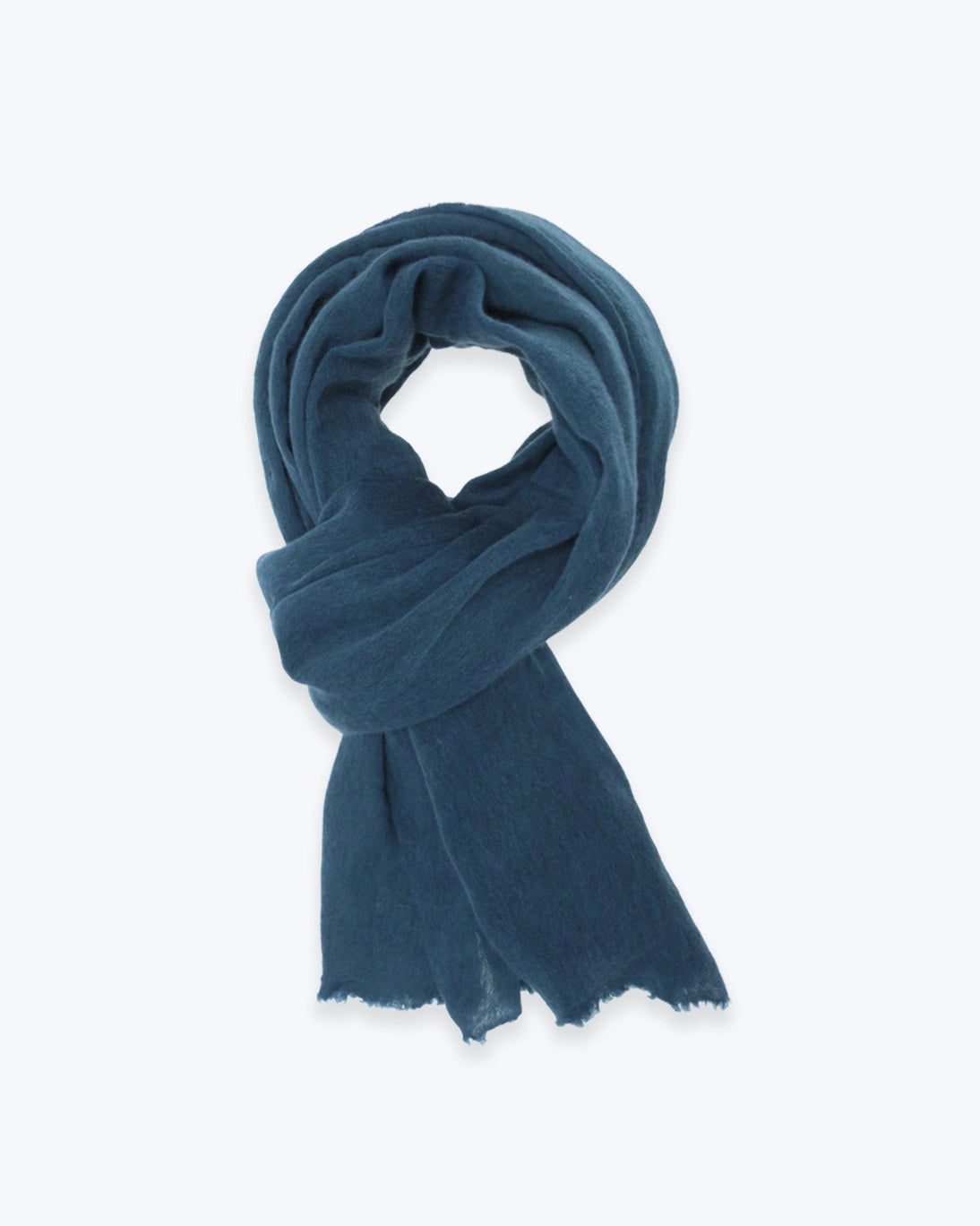 Bufanda de cashmere, de color azul petróleo, de la marca Botto Guiseppe.