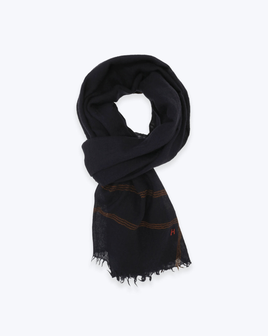 Bufanda de lana, de color navy con cuadros rojos, de la marca Hartford.