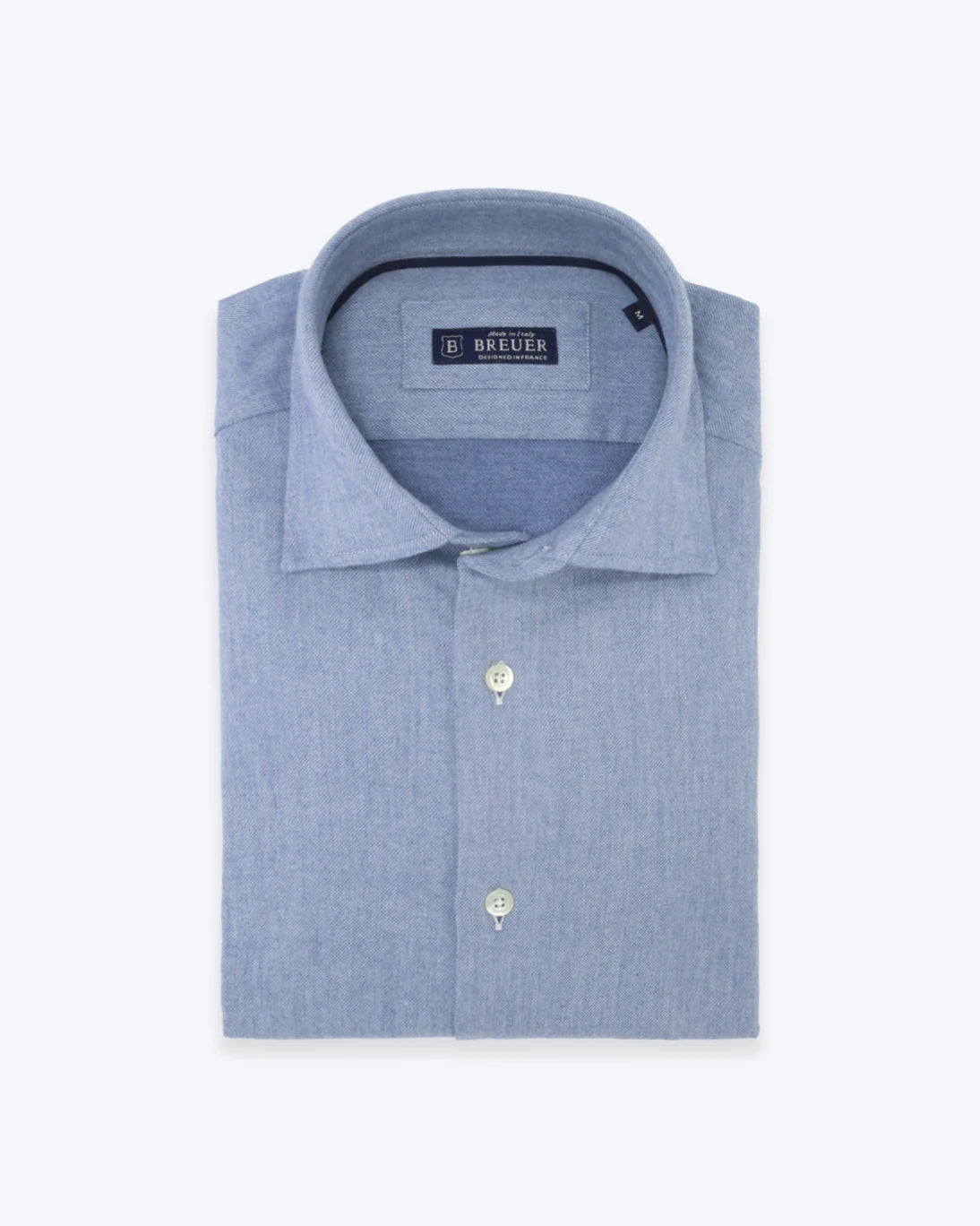 Camisa de la icónica marca Breuer, confeccionada en un elegante tono azul y elaborada íntegramente en suave franela de 100% algodón, lo que garantiza una sensación de calidez, suavidad y confort excepcionales, especialmente indicada para los meses más fríos del año.