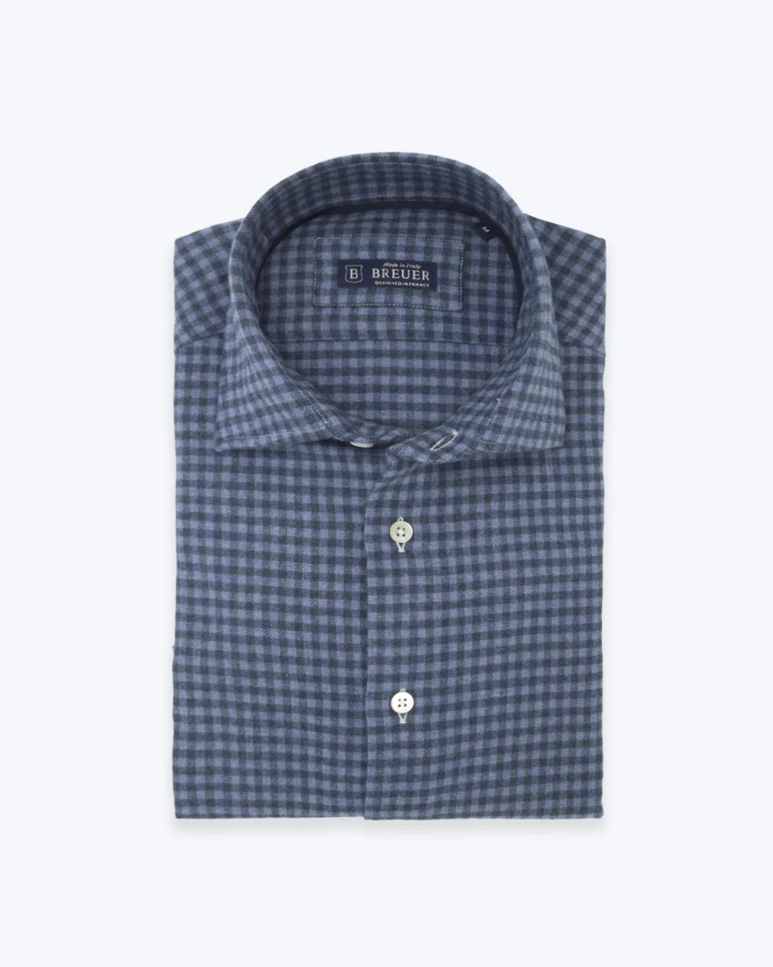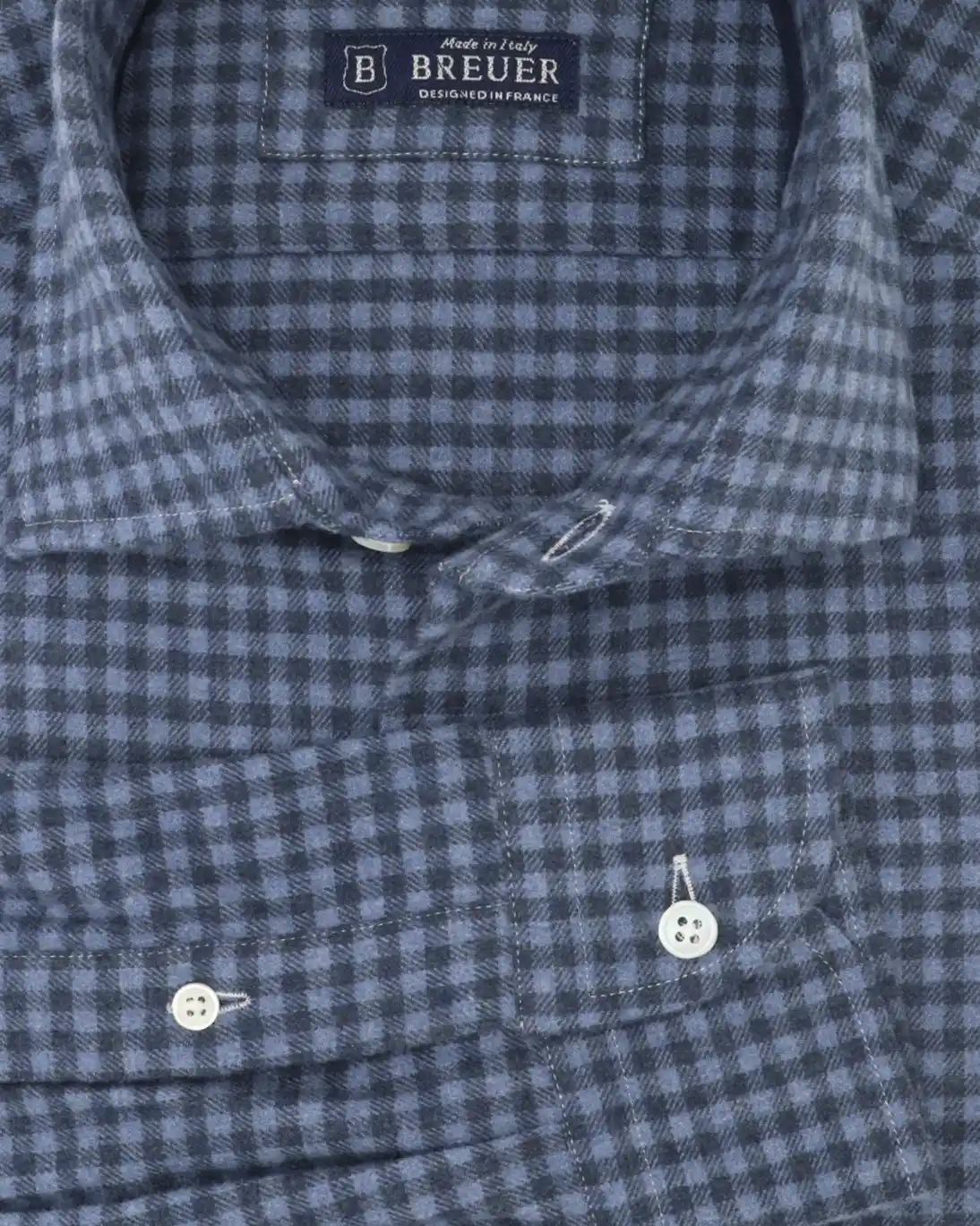 Camisa de cuadros azules de icónica marca Breuer, confeccionada en un elegante tono azul de cuadros y elaborada íntegramente en suave franela de 100% algodón, lo que garantiza una sensación de calidez, suavidad y confort excepcionales, especialmente indicada para los meses más fríos del año.