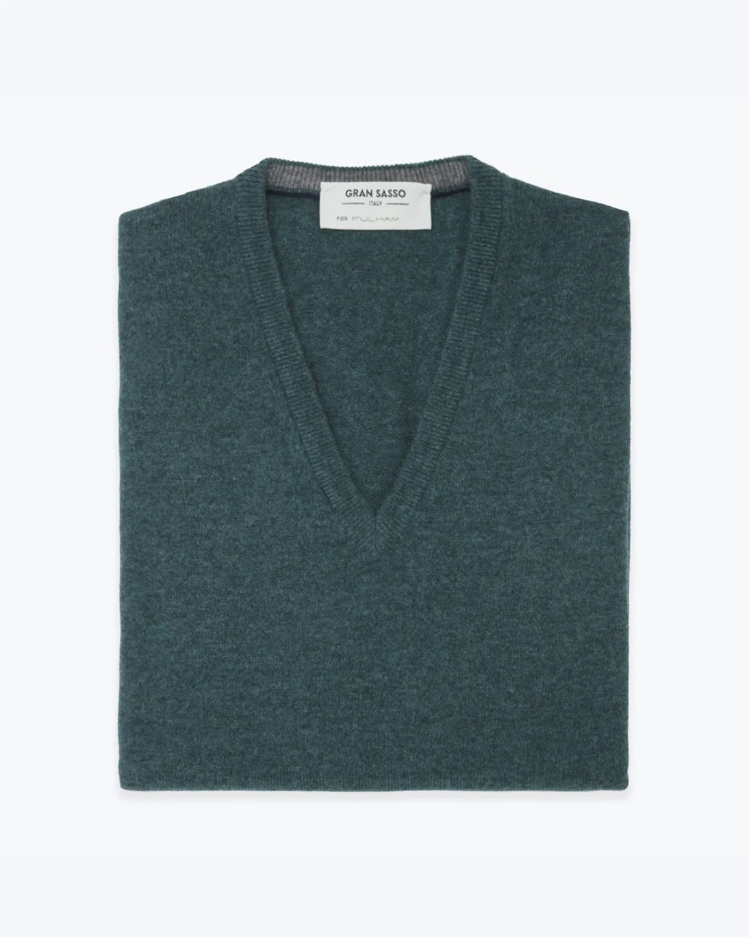 Chaleco de pico con cashmere en color verde agua oscuro de la marca Gran Sasso fabricado exclusivamente para Fulham.