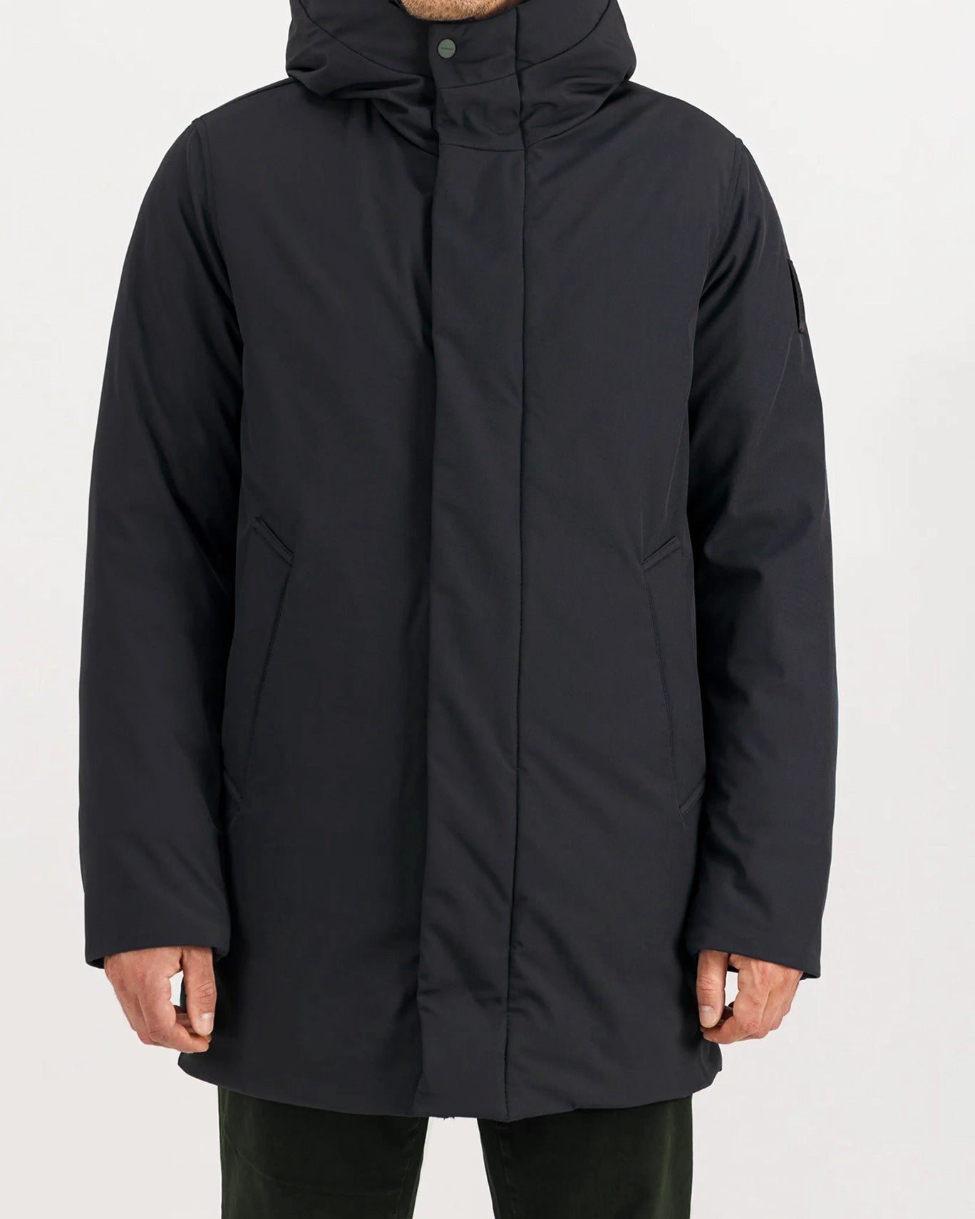 Incorpora un cierre frontal de cremallera bidireccional protegida por una tapeta con botones automáticos. Dispone de bolsillos laterales forrados en forro polar y cuatro bolsillos interiores adicionales, ideales para guardar objetos personales. Los puños cuentan con ajuste elástico, evitando la entrada de frío.