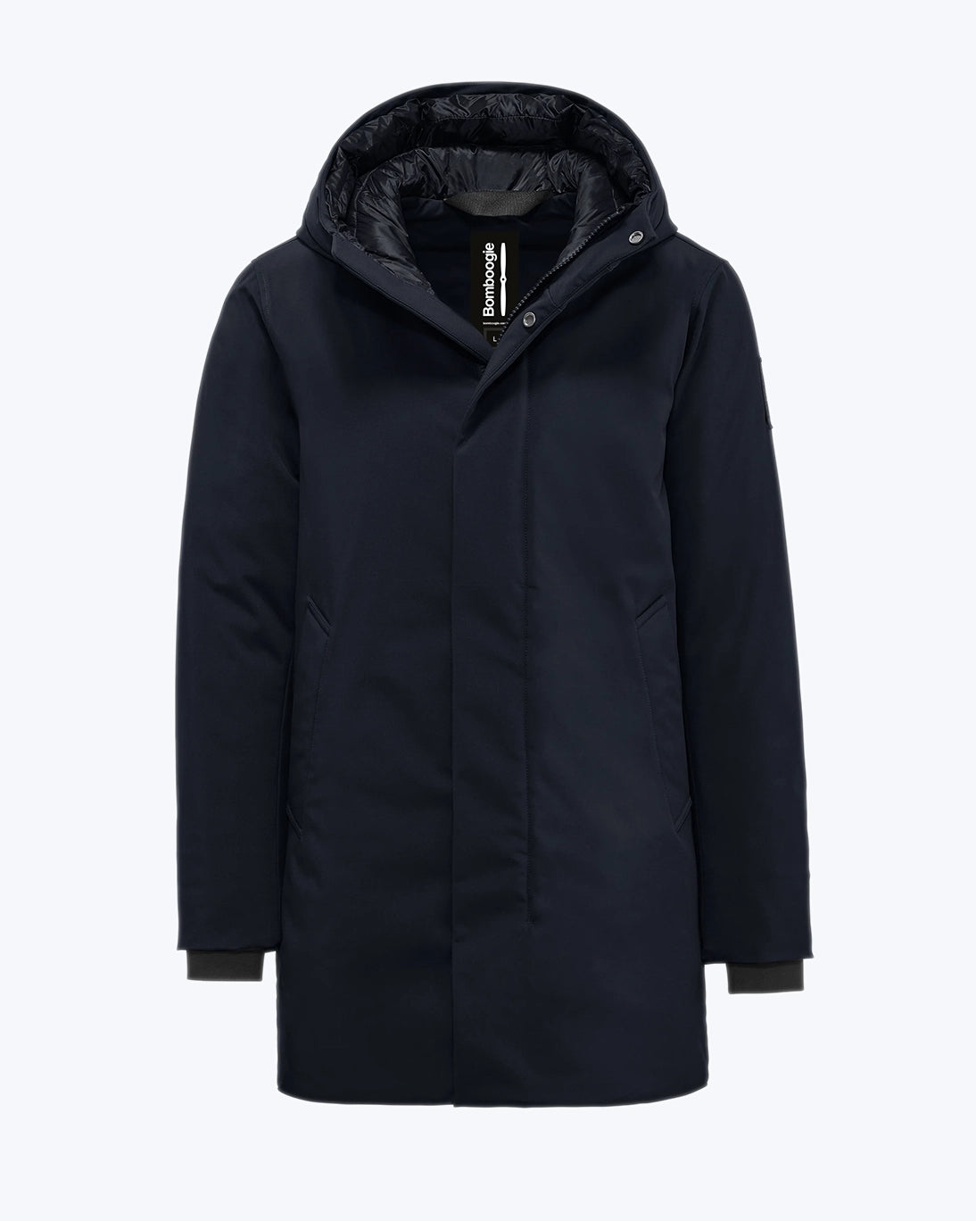Parka azul marino con capucha de la marca Boombogie, impermeable y de corte regular.