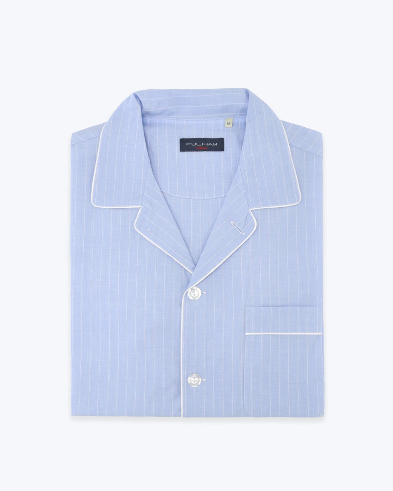 Pyjama à manches longues Fulham en bleu clair avec des rayures blanches.