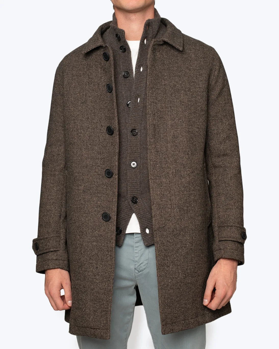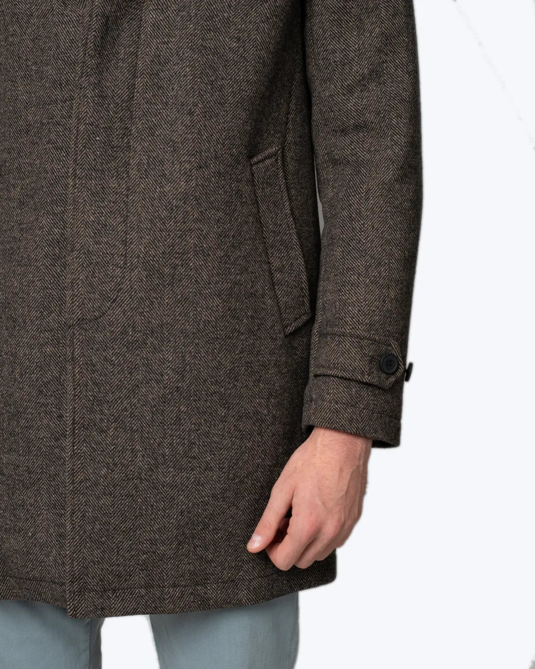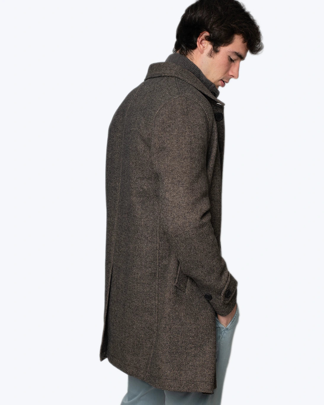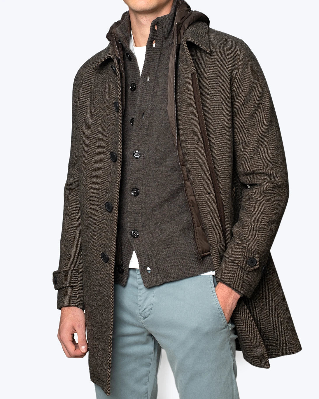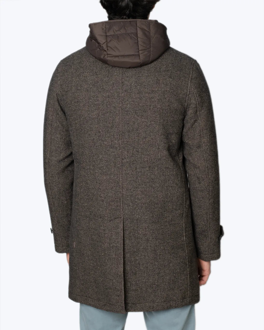 ABRIGO DE ESPIGA MARRÓN CON CAPUCHA AT.P.CO