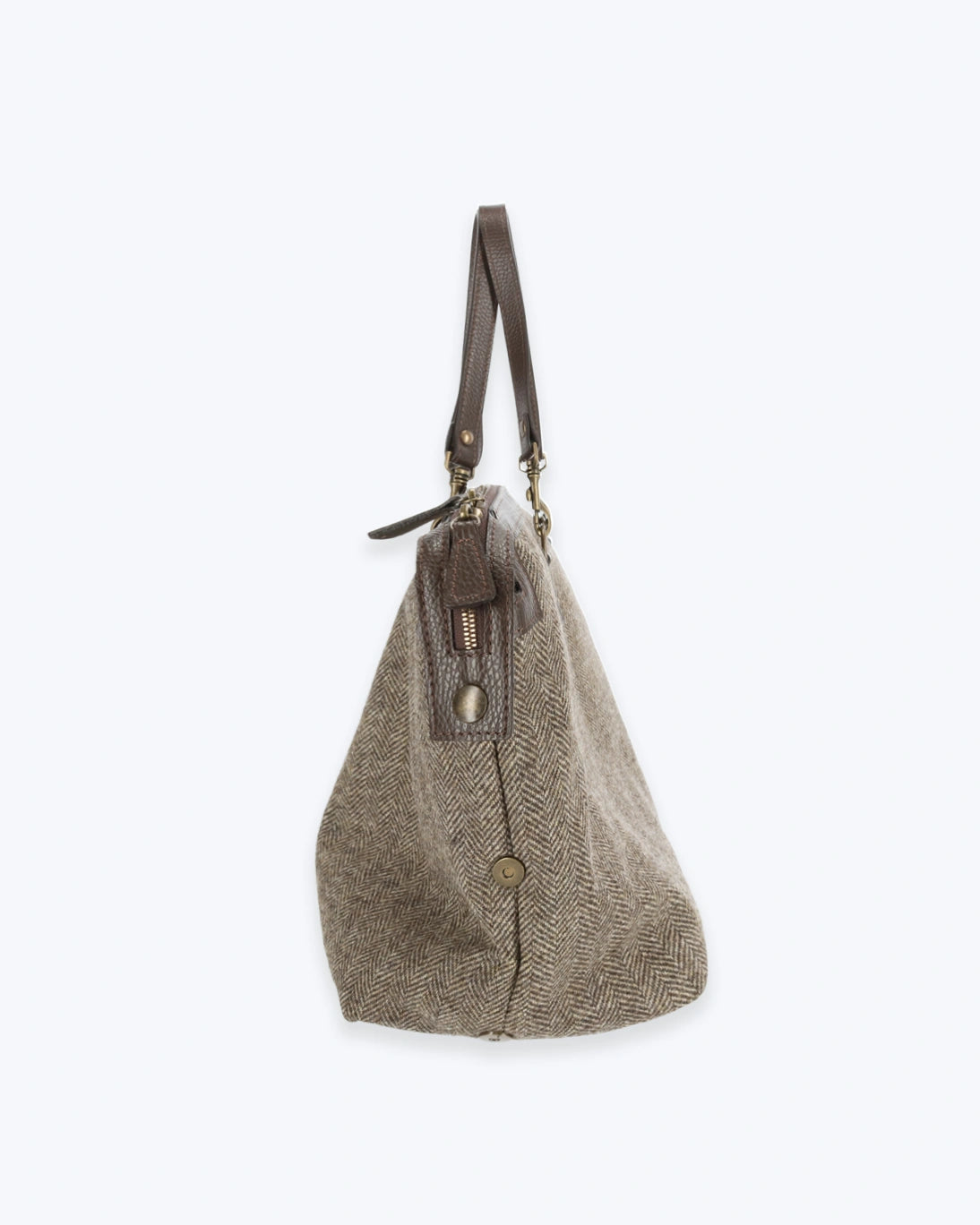 Bolsa de viaje con estampado de espiga marrón, de la marca Bonfanti.