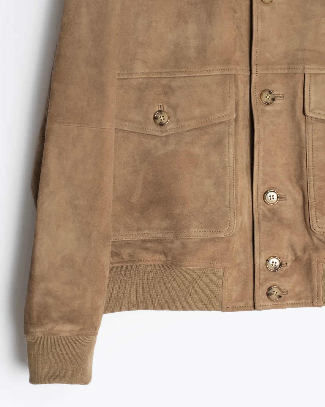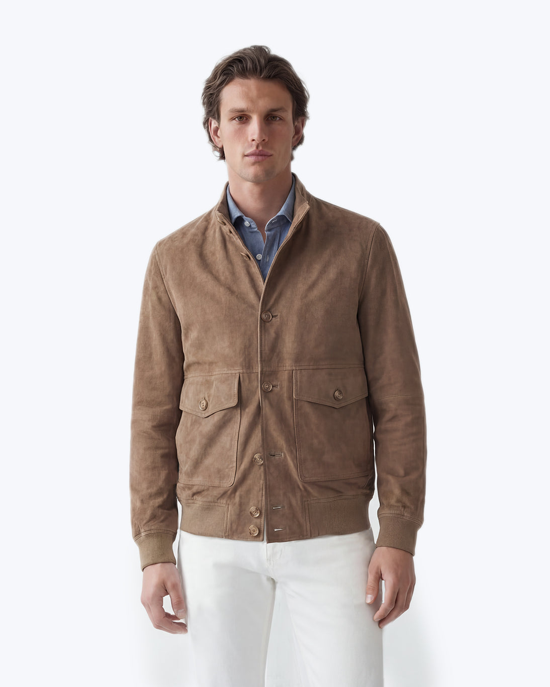 Cuenta con cierre frontal de botones y dos bolsillos con solapa y botón, que además funcionan como bolsillos laterales.