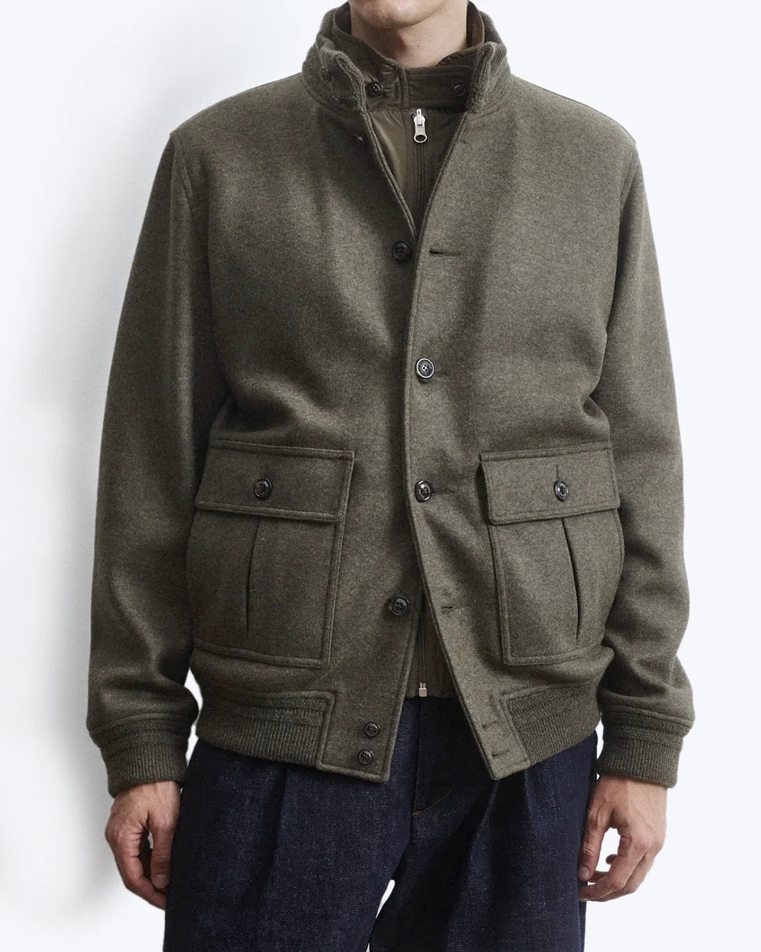 Detalles que evocan la histórica chaqueta de aviador A1, reinterpretada con un toque contemporáneo que combina elegancia y funcionalidad.