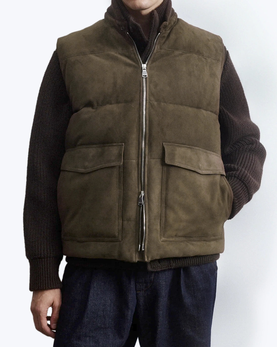 Chaleco de ante color musgo de la firma italiana Valstar.
