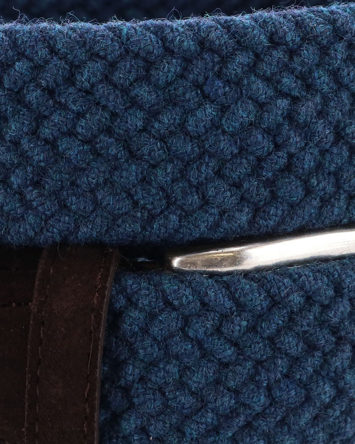 Cinturón trenzado elástico de la marca Fulham en color azul, con detalles en ante.