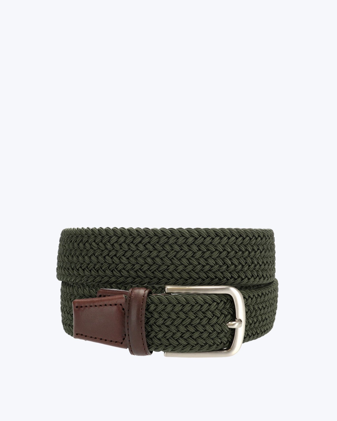 Cinturón trenzado elástico, en color verde, de la marca Fulham.