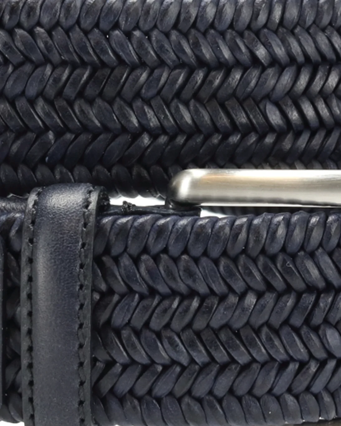 Cinturón trenzado elástico de la marca Gavazzeni en color azul, con hebilla cuadrada y remates en piel azul.